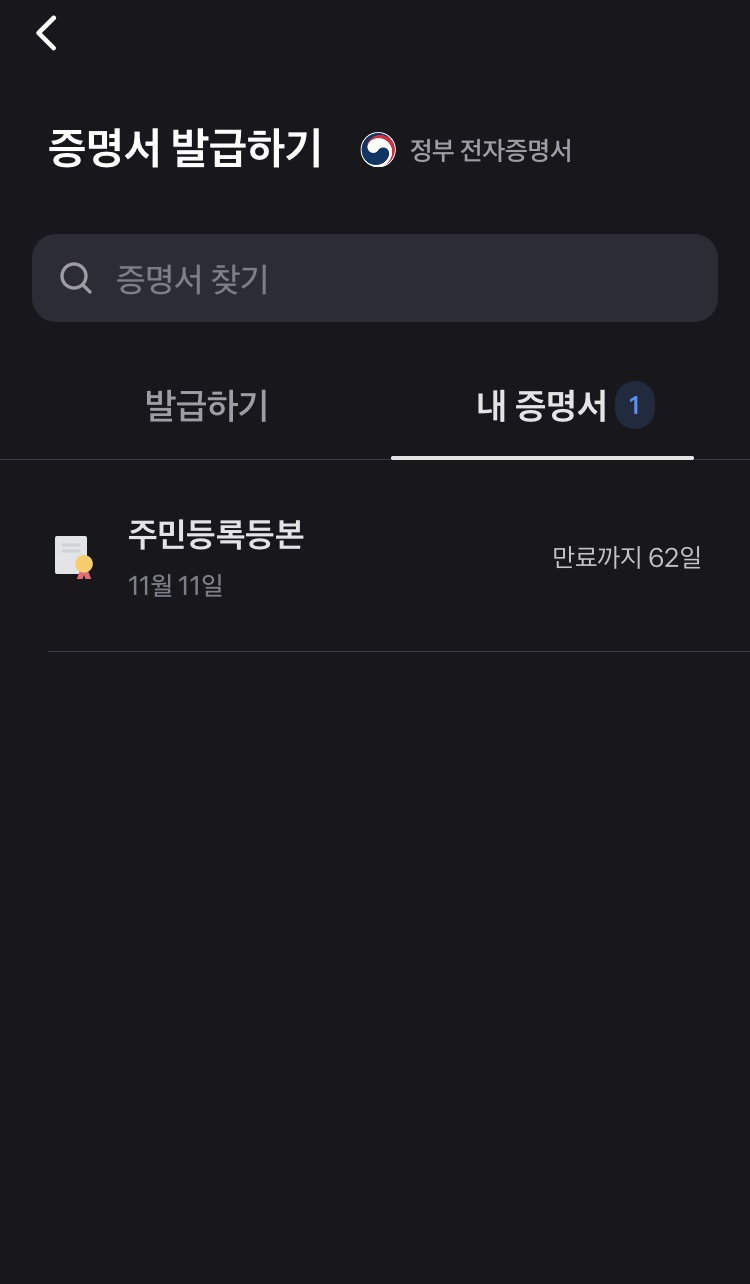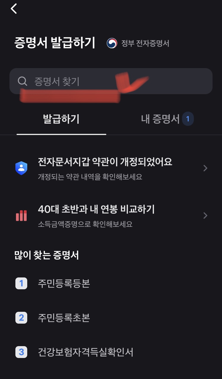 발급받고자 하는 증명서도 검색하는 것이 편하다.