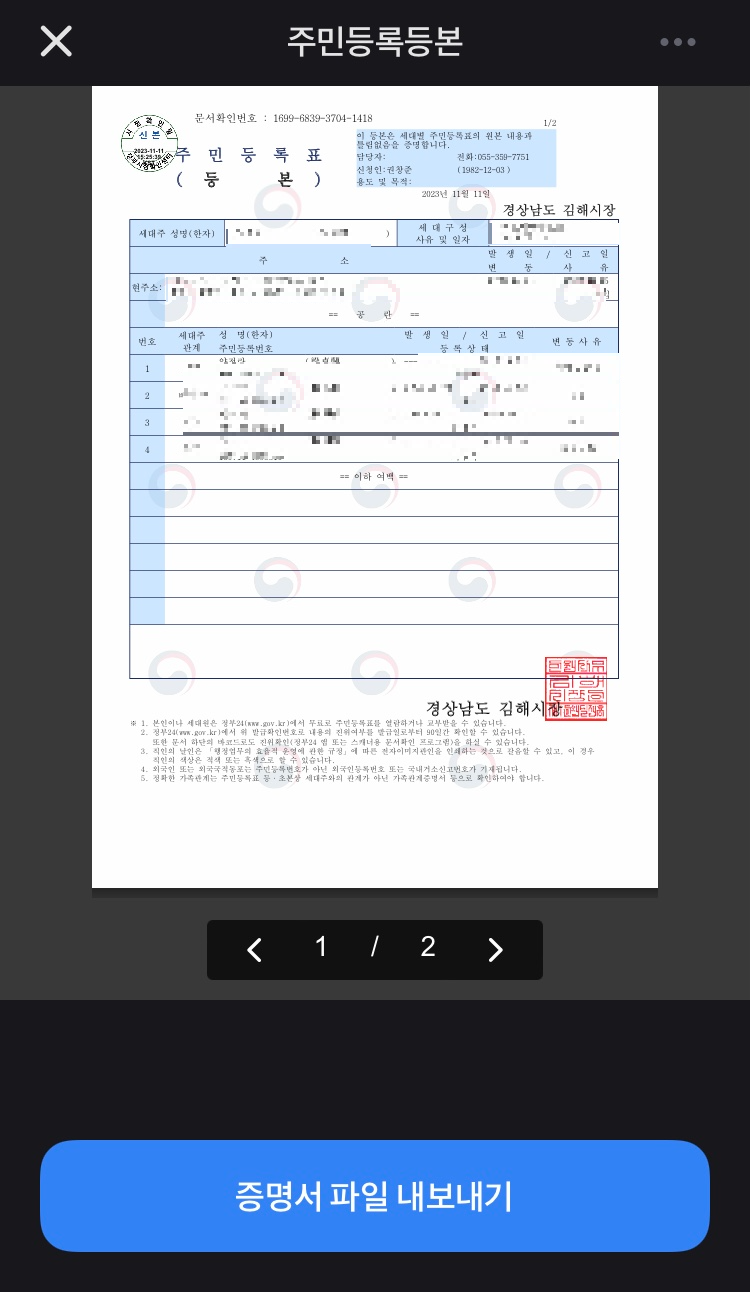 나는 이미 주민등록등본을 발급받았고, 만료기간까지 나와 있다.