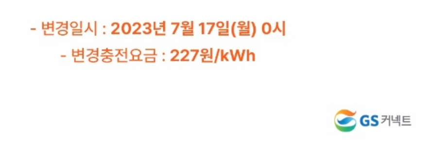 지난 2023년 7월 17일 자로 GS커넥트의 G(지)차저 요금이 인상되어 227원이었다.