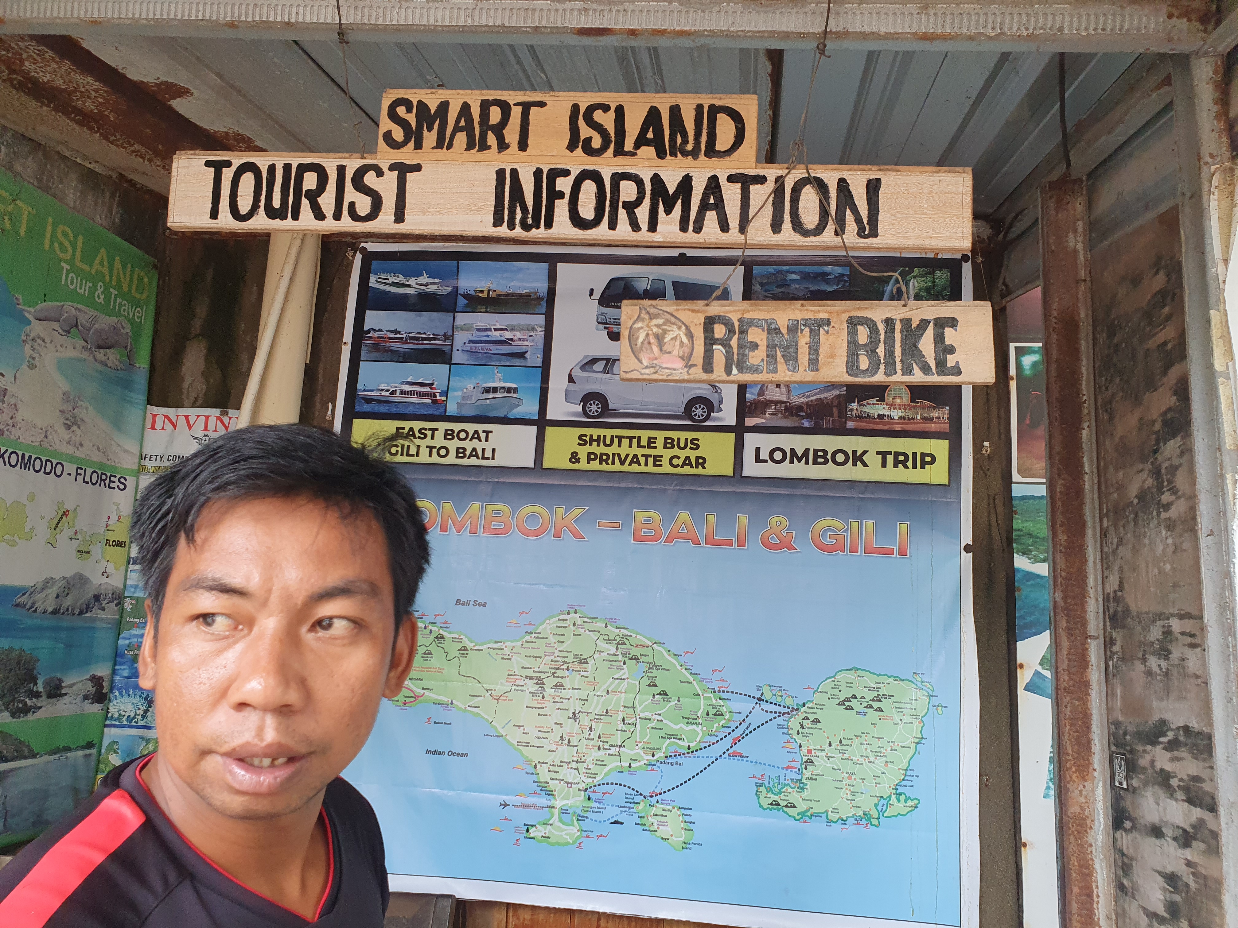 빨래 맡기러 가다가 빨래방 바로 옆에서 위 사저씨 만나서 투어예약을 했다.(길리는 빨래도 엄청 비싸서 킬로당 250k)