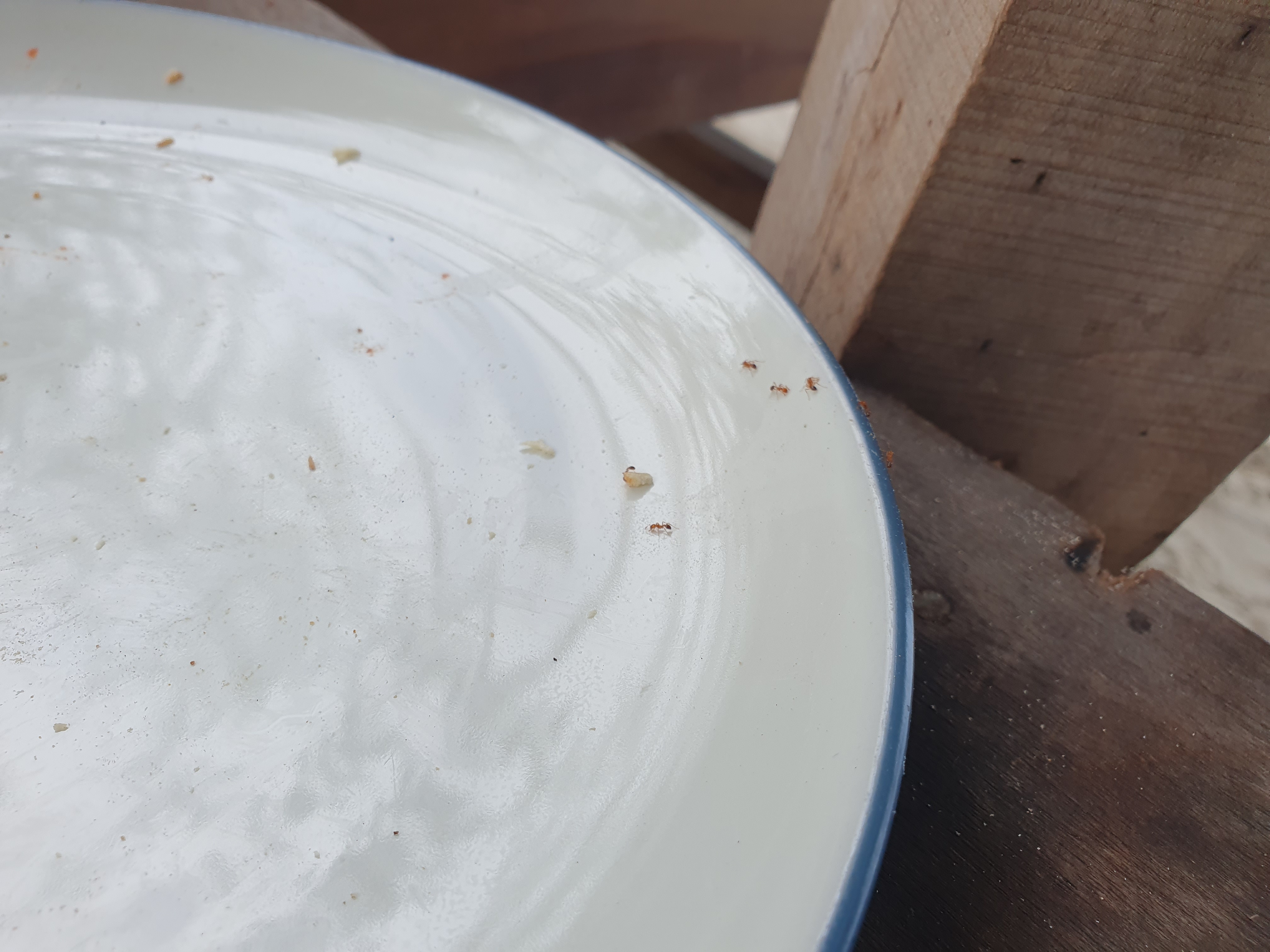 아이들이 먹은 피자 그릇에 개미들이 왔다.