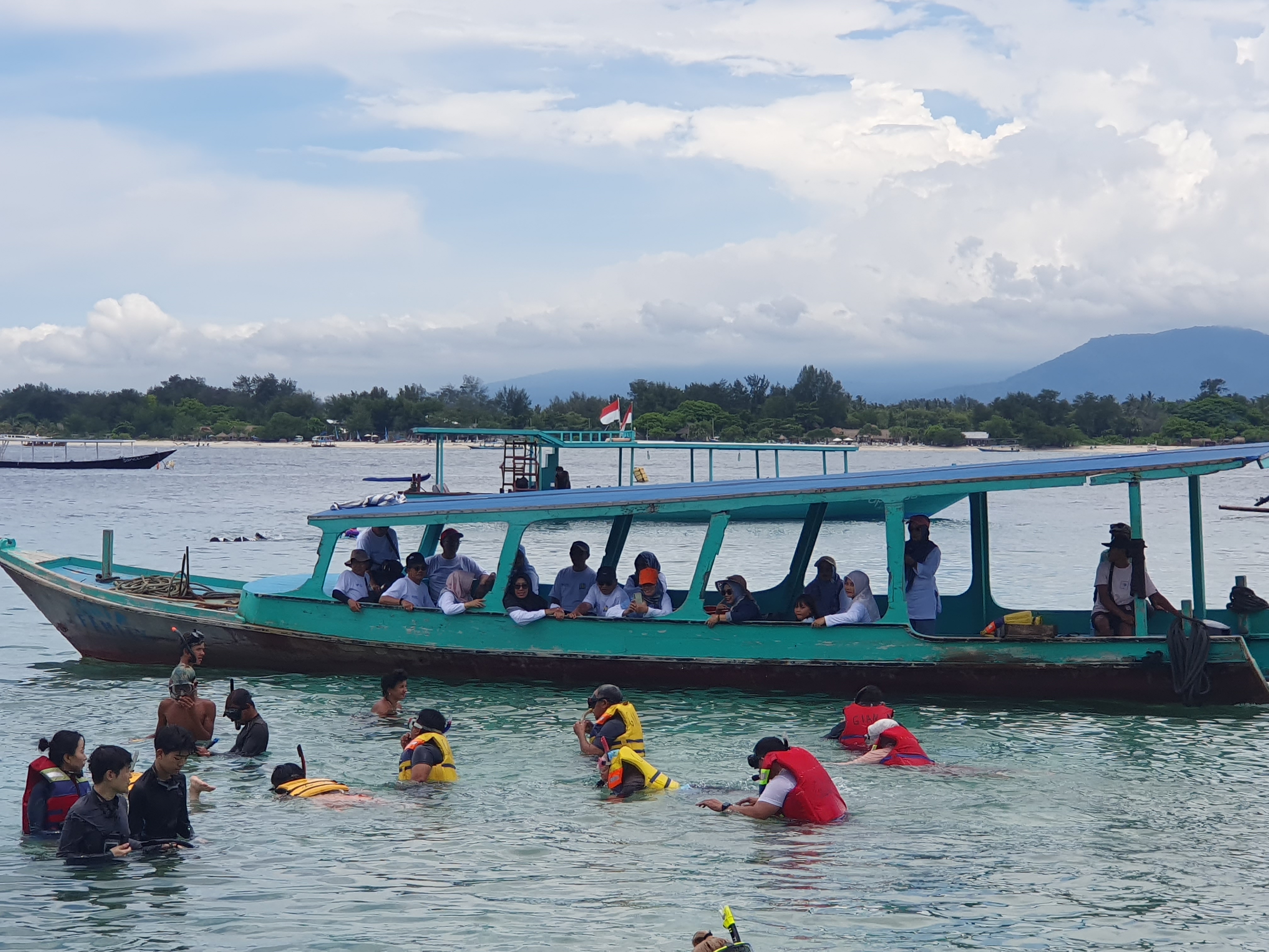 오전 시간인데 길리T 터틀포인트에 다른 섬에서 스노클링 투어를 오는 배들이 상당히 많다.