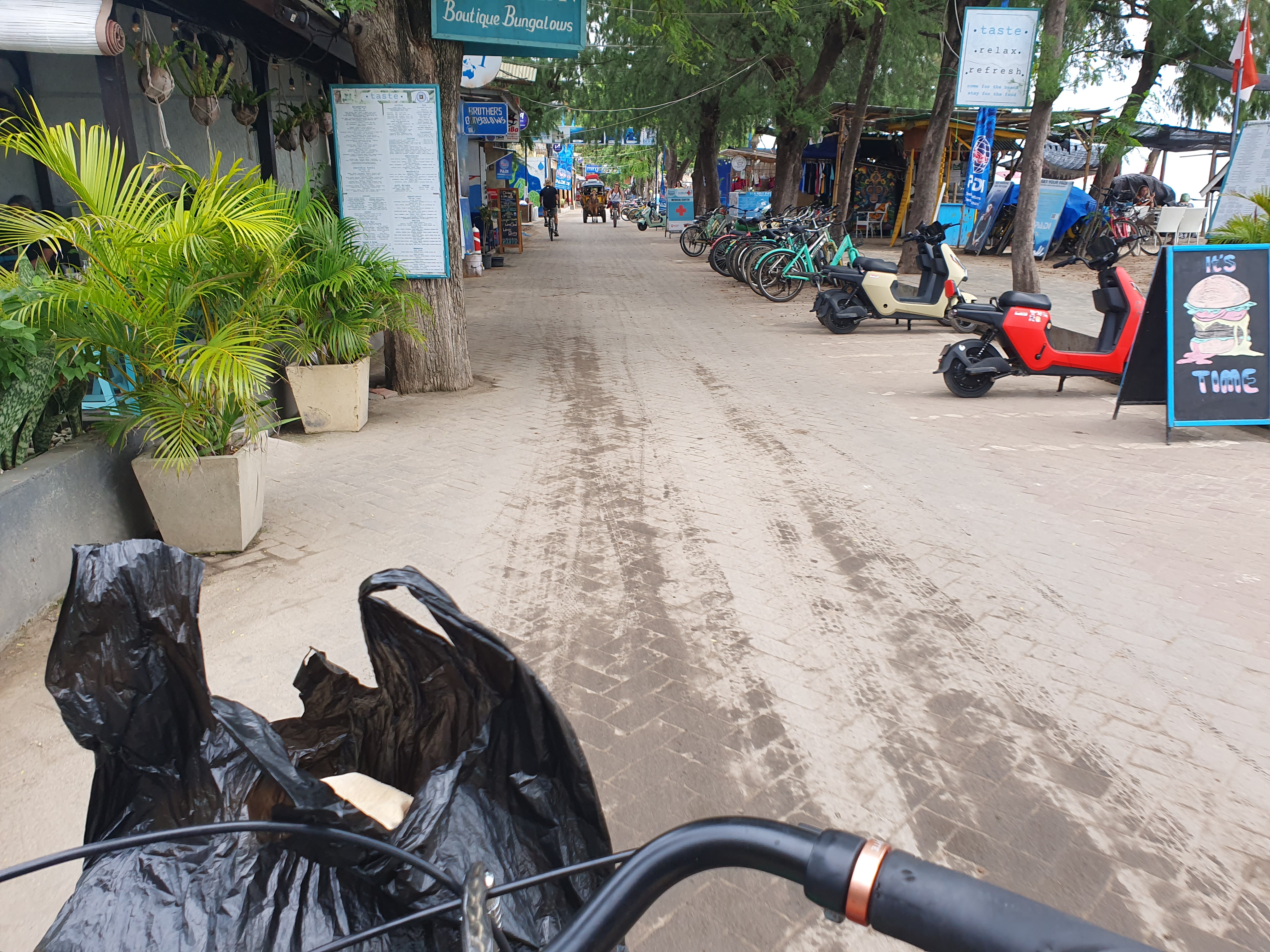 조식 후 낮에 길리T 자전거 타고 한바퀴 돌아보았다.