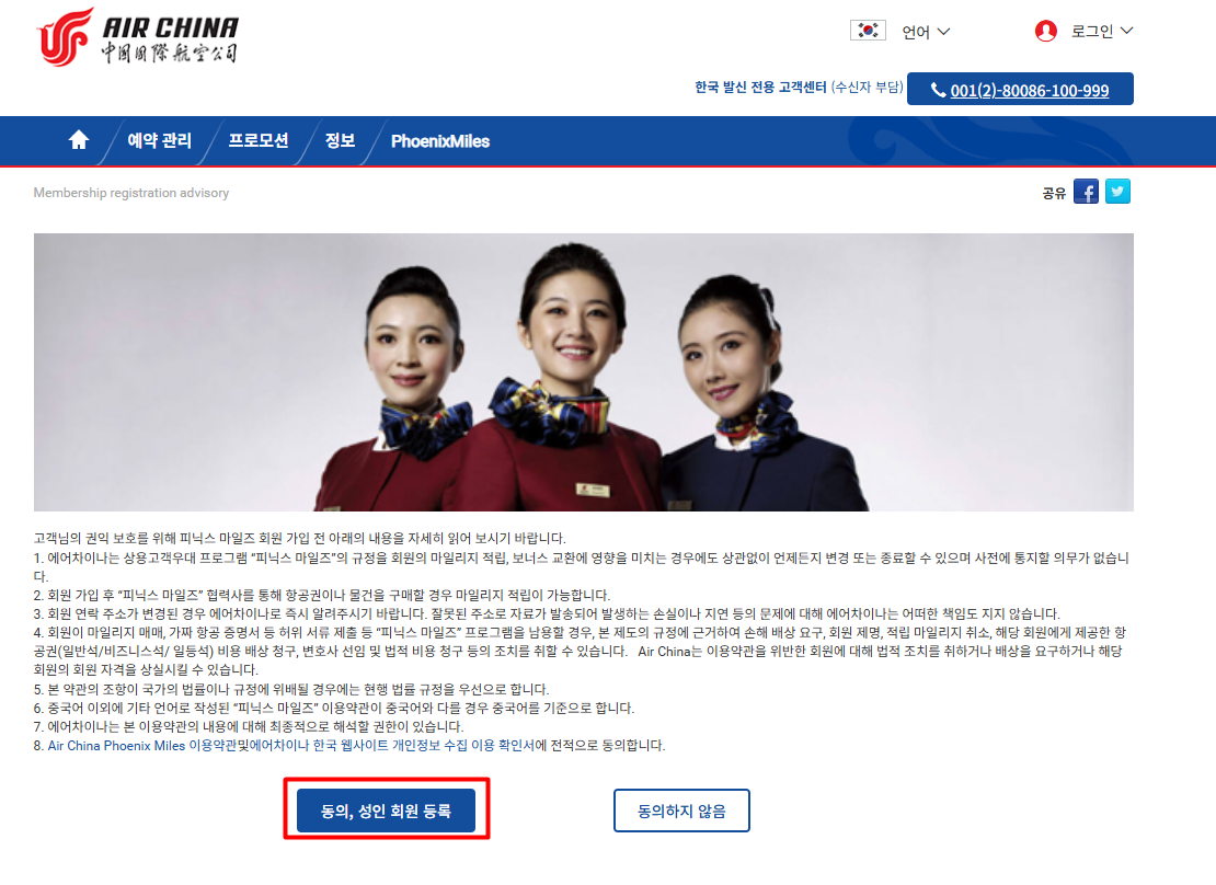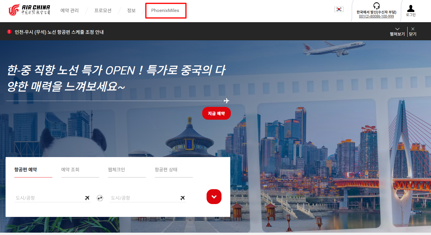 에어차이나(AIR CHINA) 베이징(북경) 경유 무료 환승호텔(트랜짓 호텔) 예약