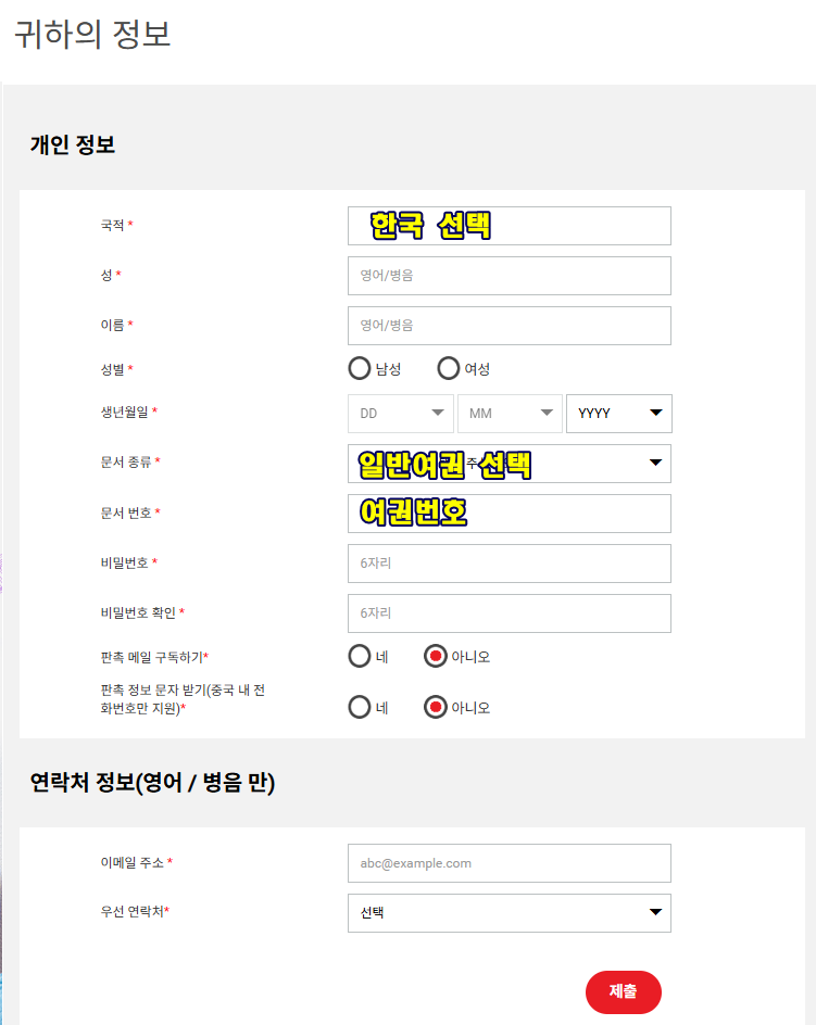 연락처 정보 아랫쪽에 주소와 연락처를 넣어주어야 한다.