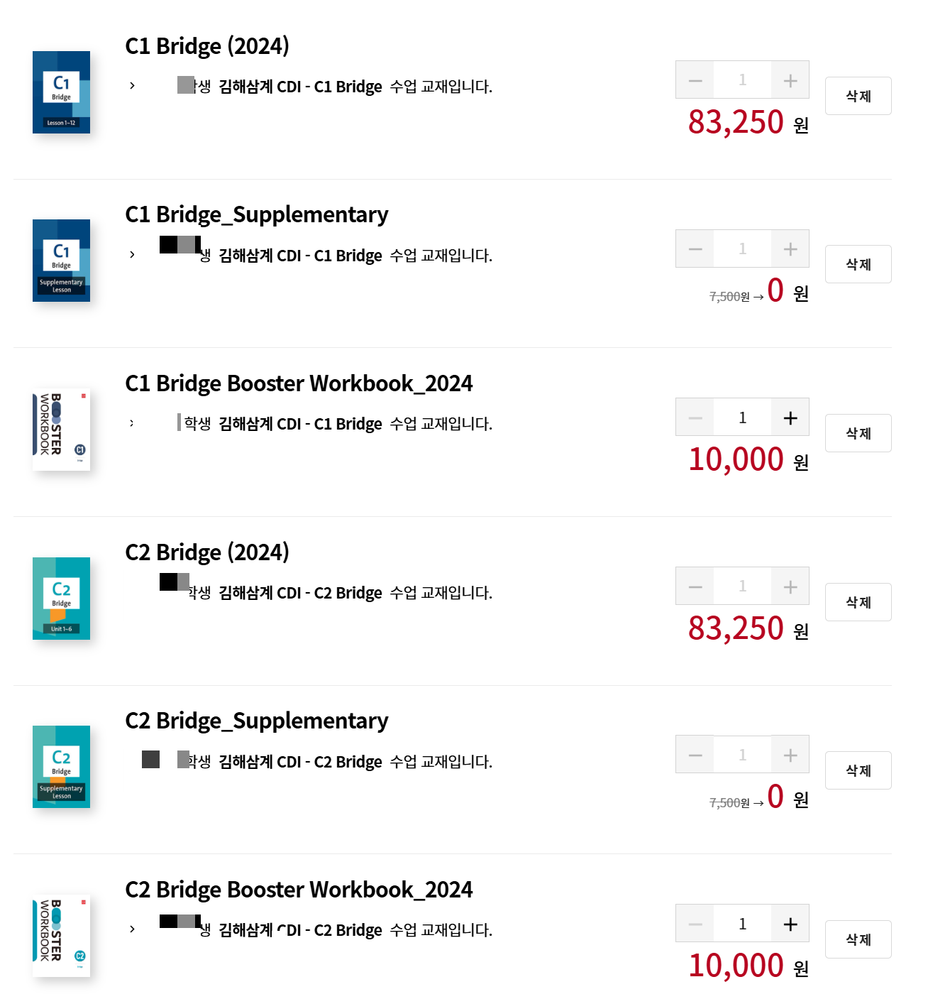 다음 학기 3개월 청담어학원 브릿지(Bridge) 교재 구매