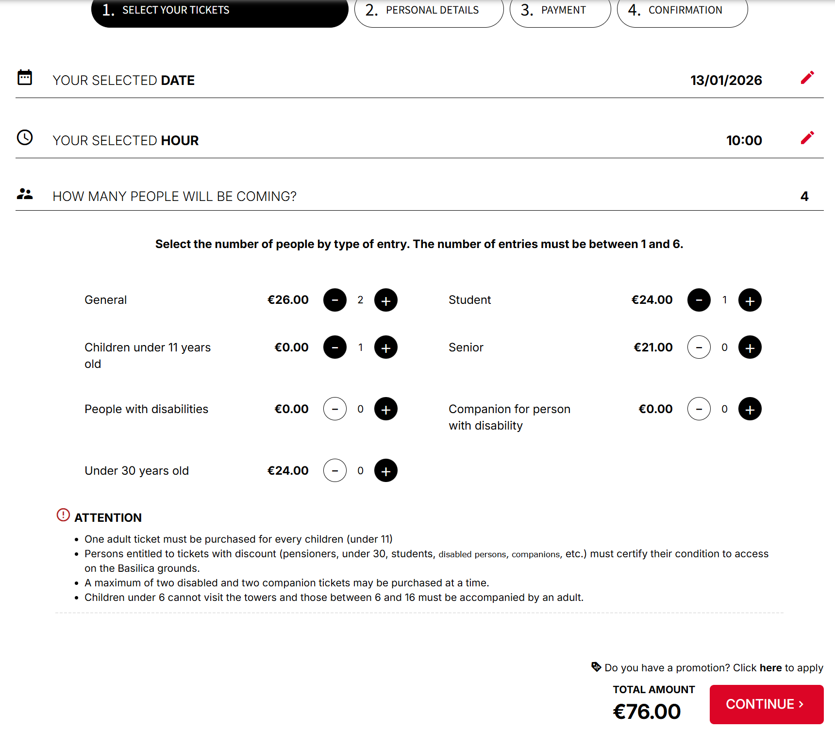 첫째는 스튜던트 티켓이라 성인보다 2유로 저렴했고, 둘째는 무료