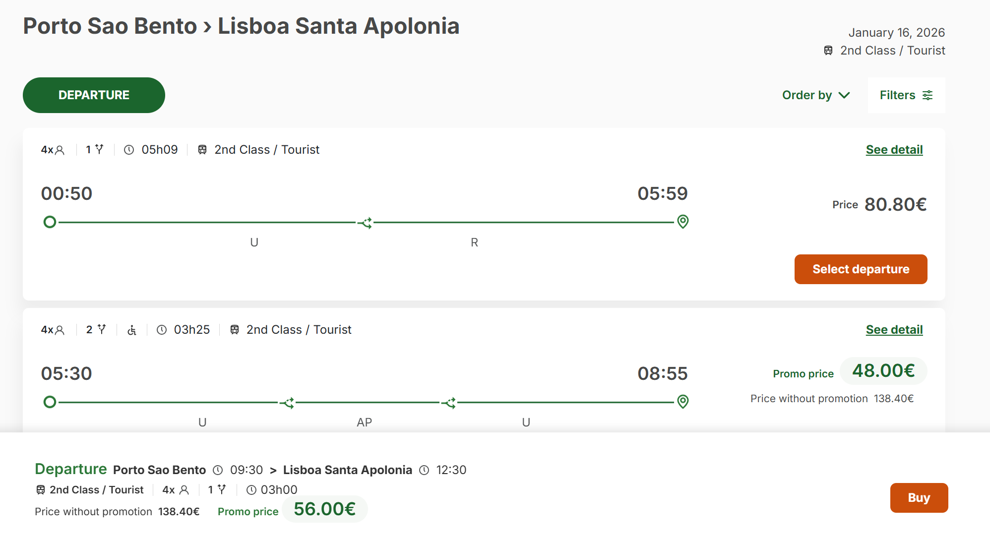 포르투에서는 Campanhã 역에서 리스본의 Santa Apolónia 또는 Oriente 역을 가야 직행이 있는 듯 하다.