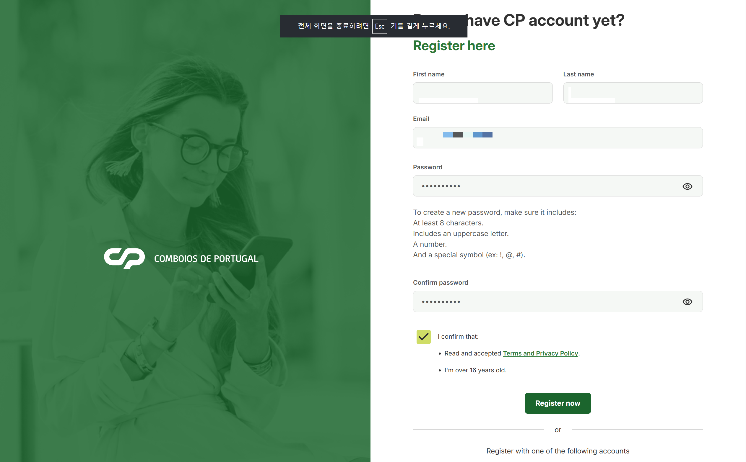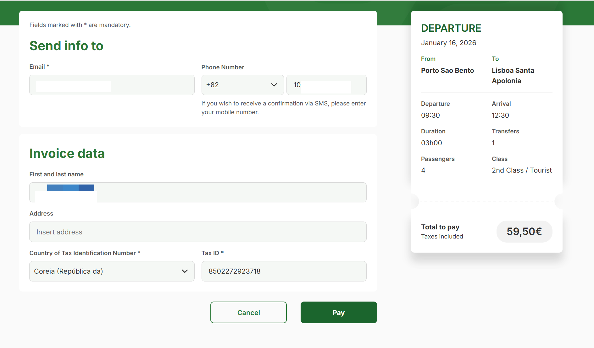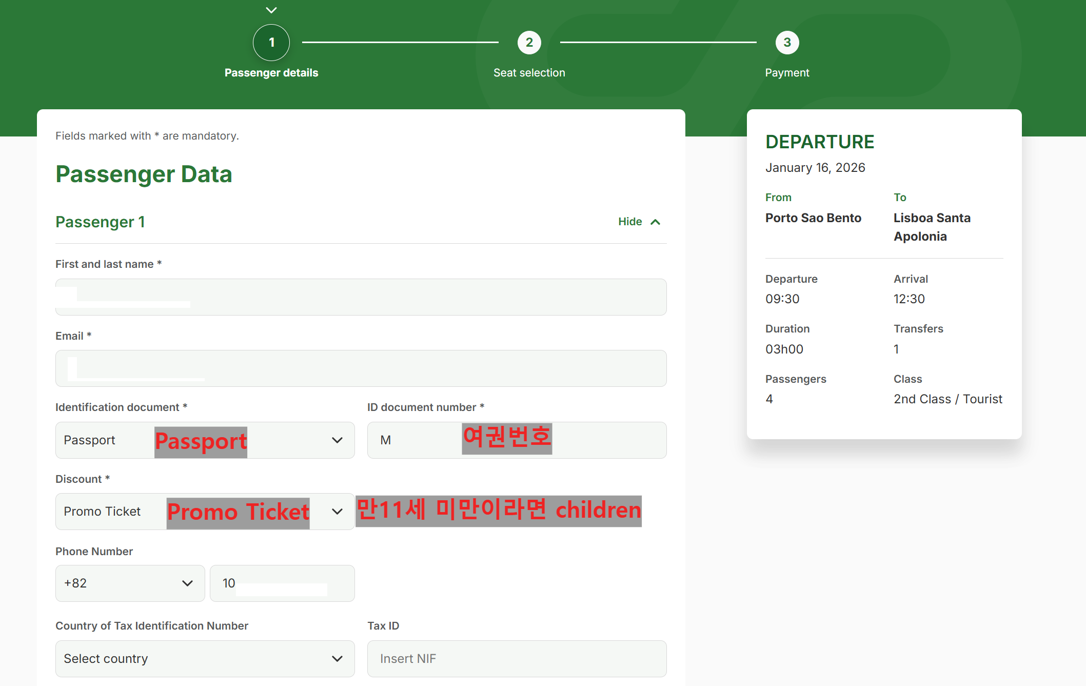 포르투갈 CP기차 예매(포르투 São Bento 역 에서 리스본 Santa Apolónia) 예약 방법(zip code 오류)