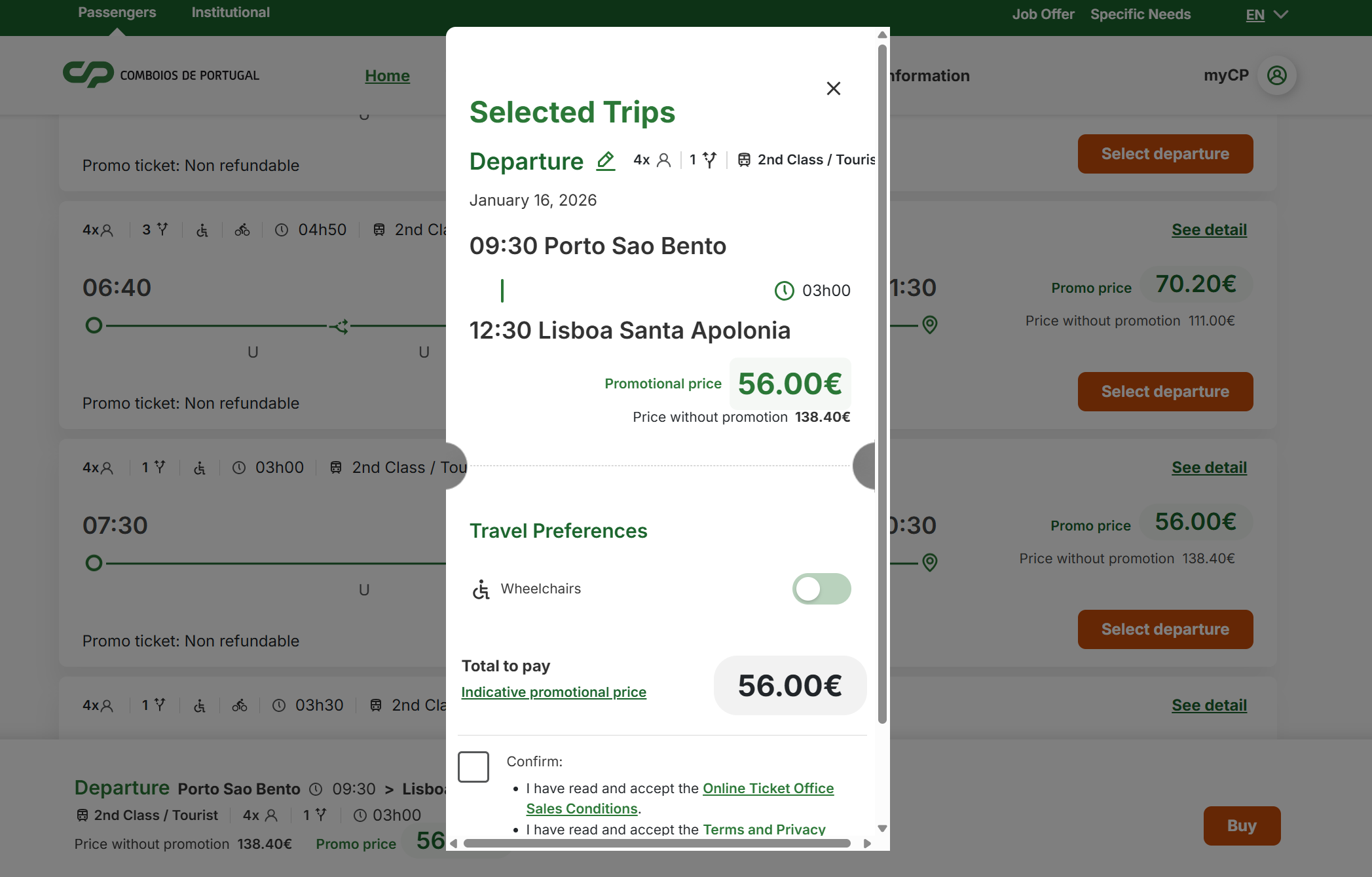 CP 기차 공식 홈페이지 또는 모바일 앱에서 예매 가능한데, 컴퓨터가 편해서 PC에서 예매했다.