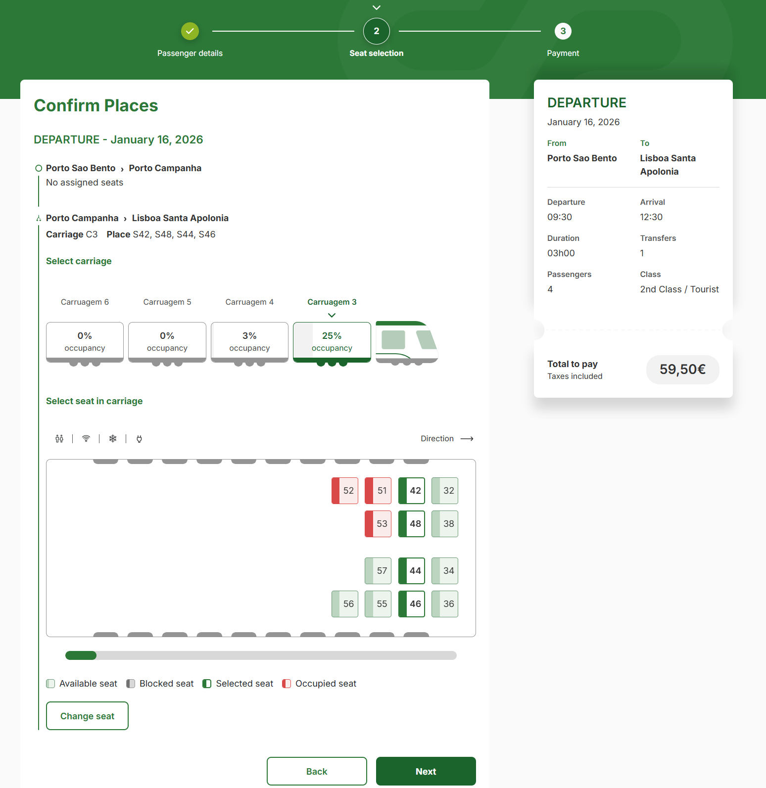 포르투 캄파냐 역에서 한 번 갈아타야 하고, 프로모 가격이라 56유로 이다.