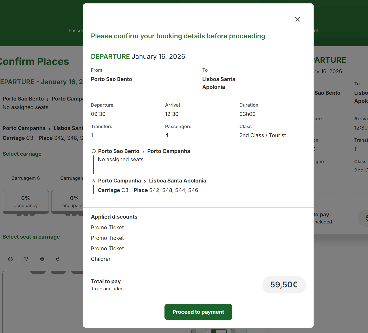 Promo Ticket 3장, children 1장 해서 59.5유로 결제