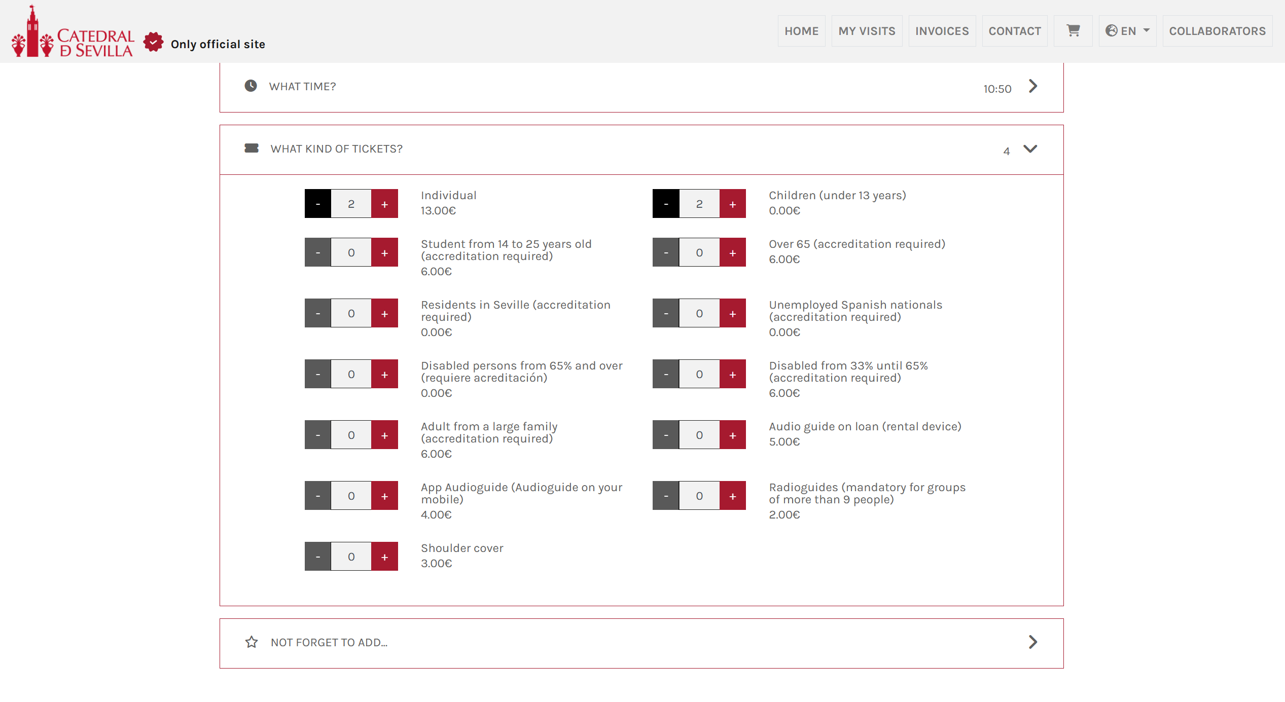 티켓종류 : 대성당 입장 + 히랄다 탑 포함(오디오가이드 제외) 으로 예약을 했다.