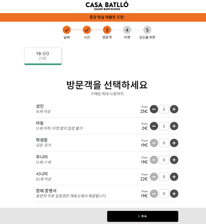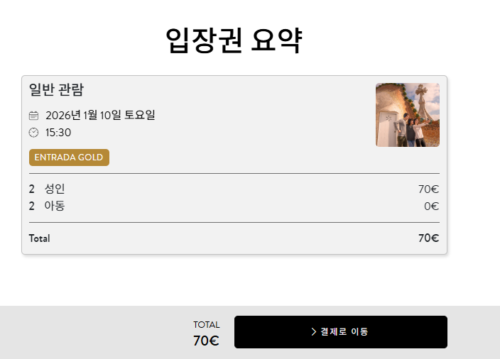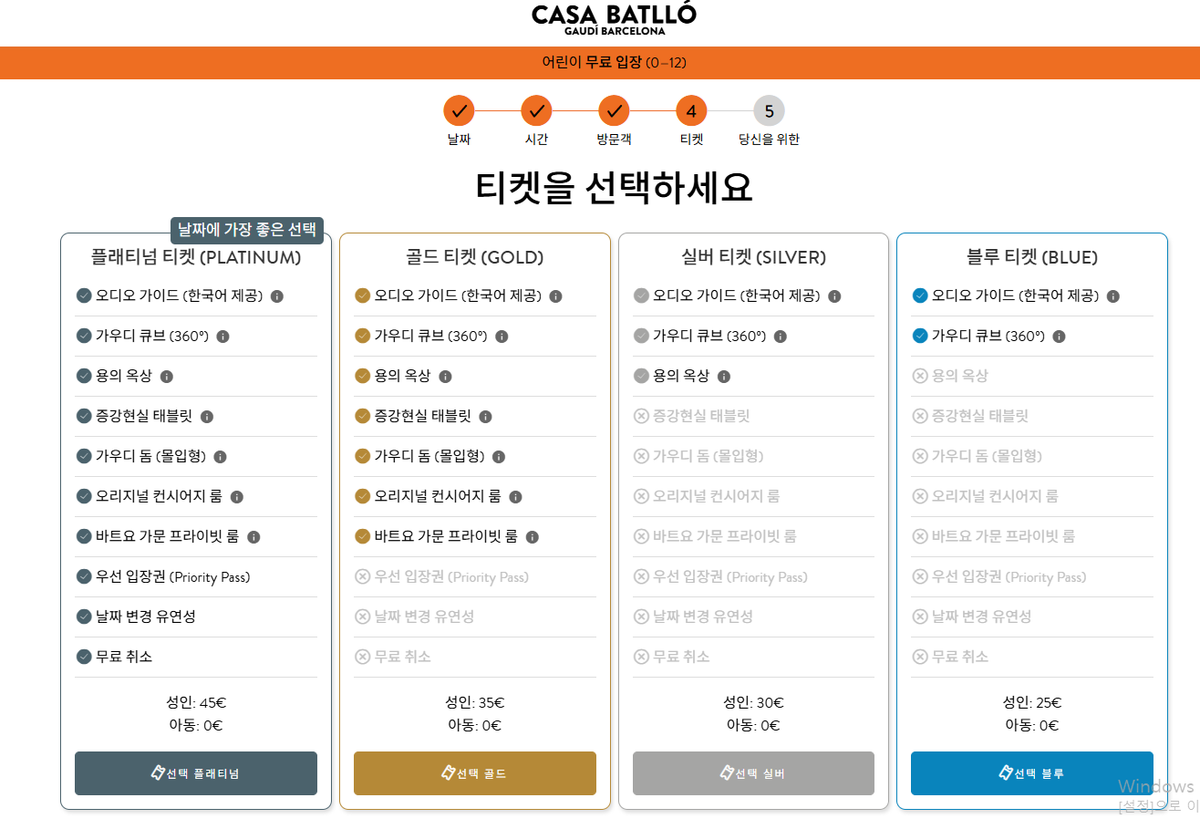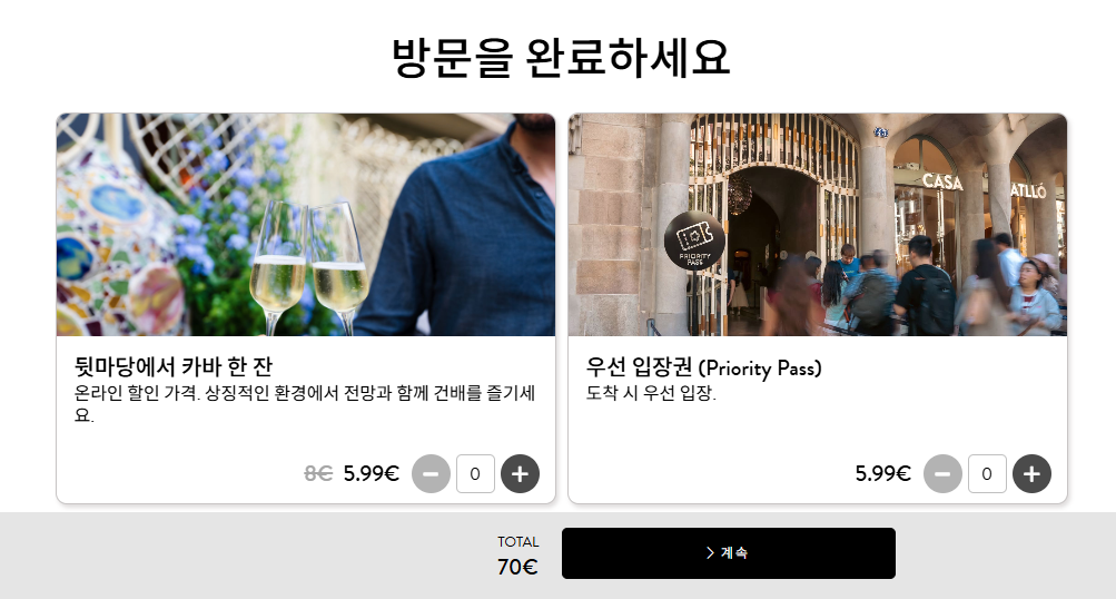 까사바트요 성인 2명 내부입장(골드티켓) 할려면 70유로가 든다.