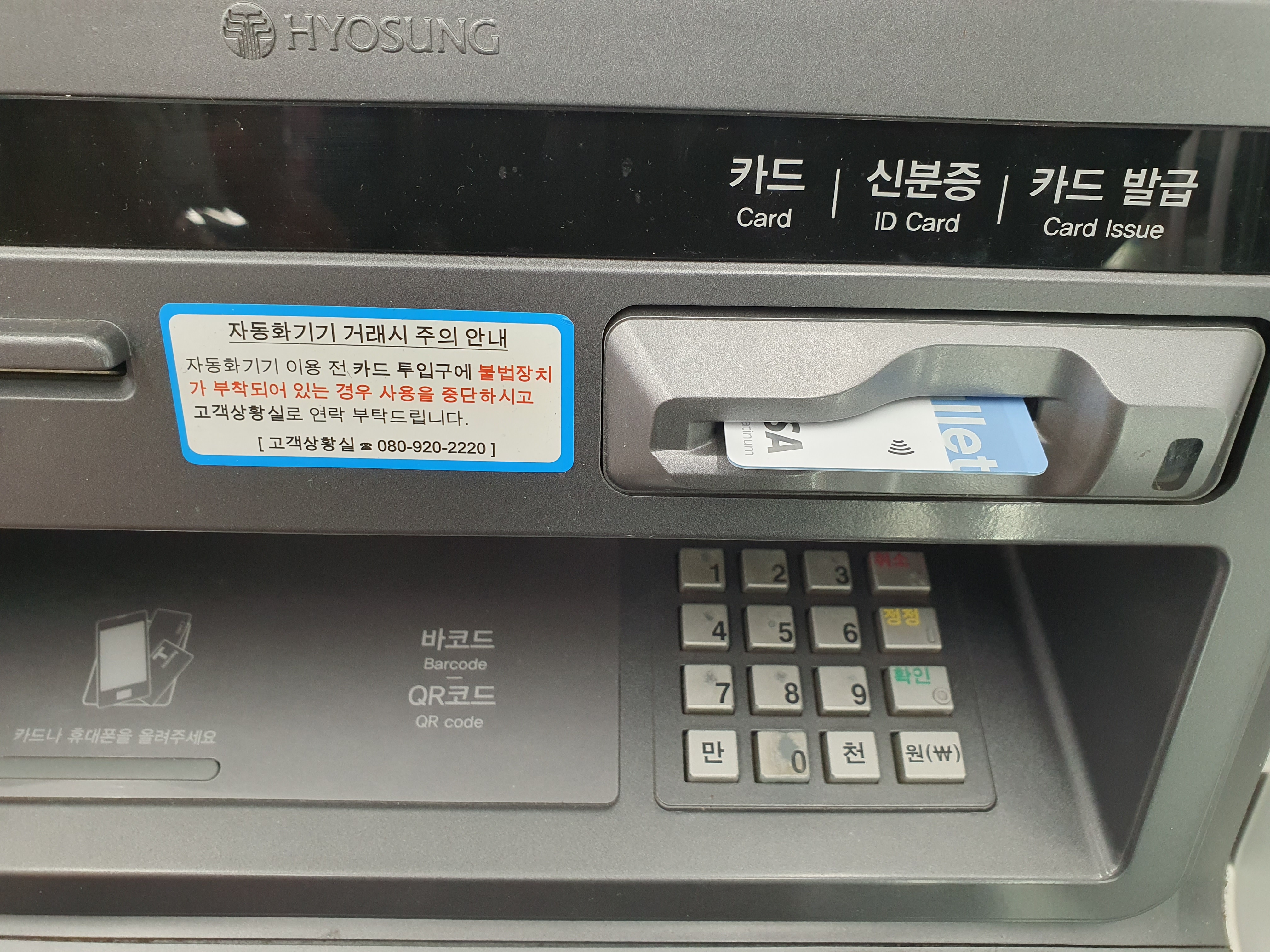 카드 투입구로 트래블월렛(Travel Wallet) 카드가 발급되어 나온다.