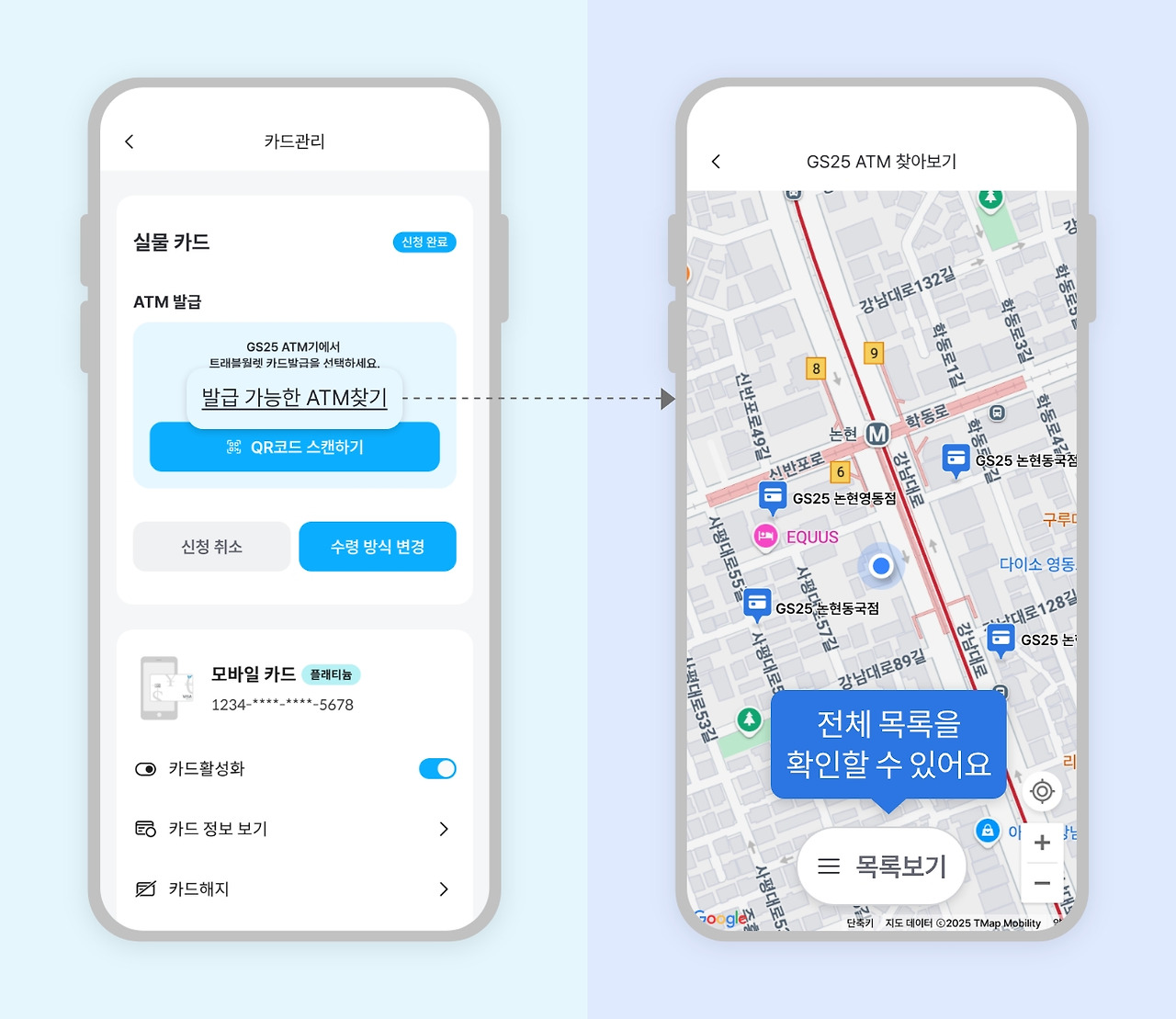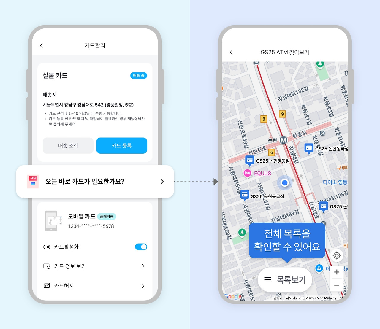 실물카드를 GS25편의점 ATM 기기에서 즉시 발급이 가능하다.