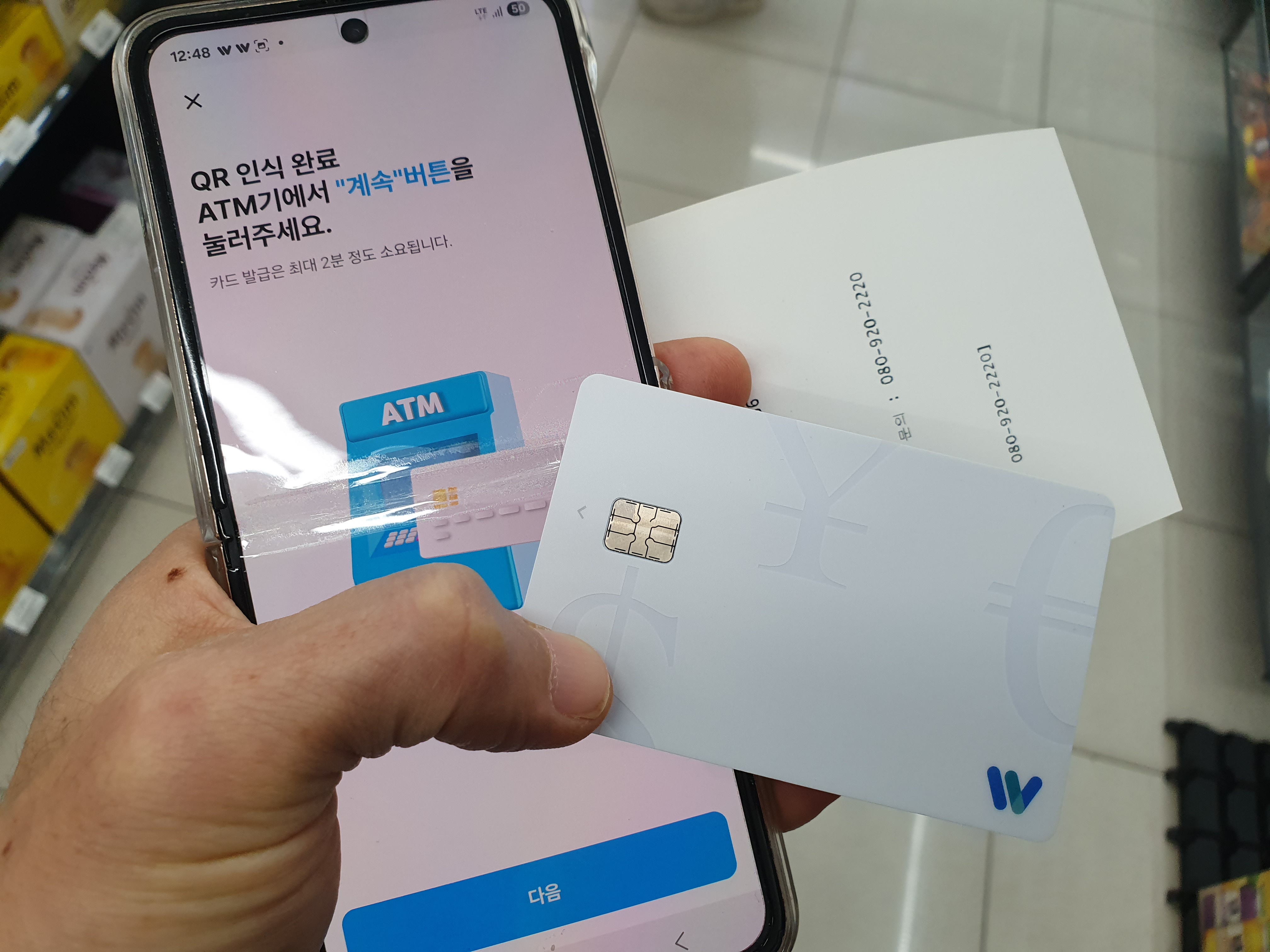실물 카드가 배송 중일 때 발급 가능한 ATM 확인 후