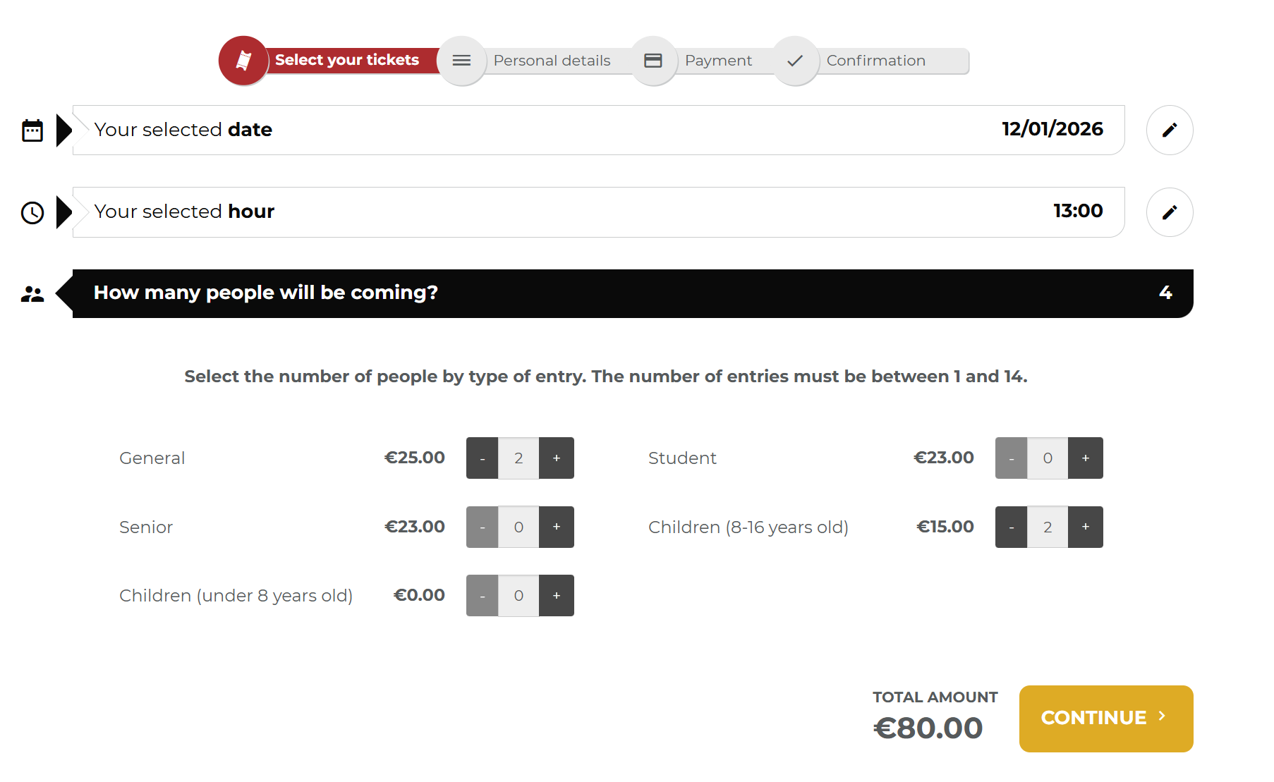 성인 기준 25유로 이고, 8세~16세는 15유로이다.