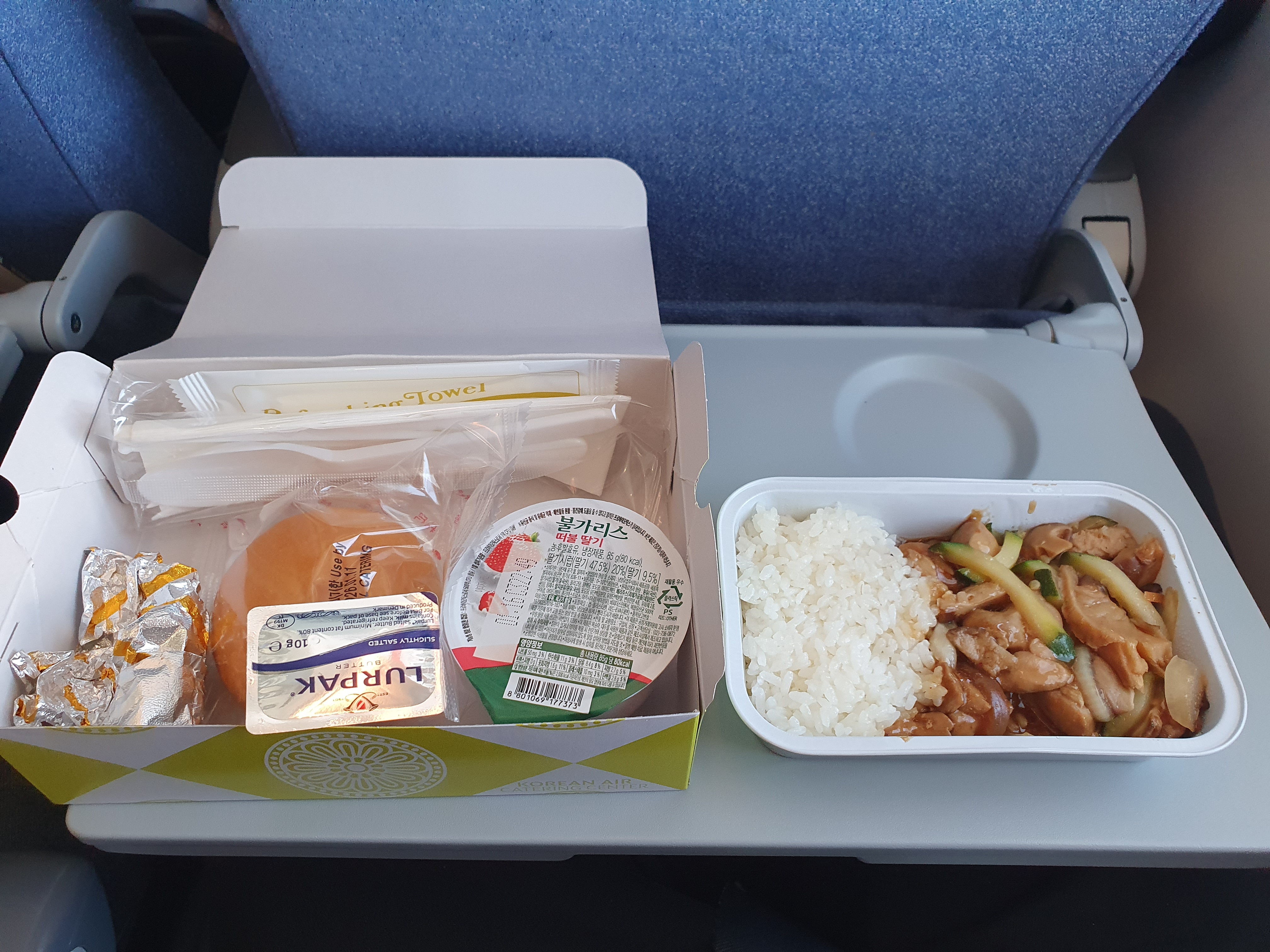 부산에서 북경가는 짧은 노선에도 기내식이 나온다.