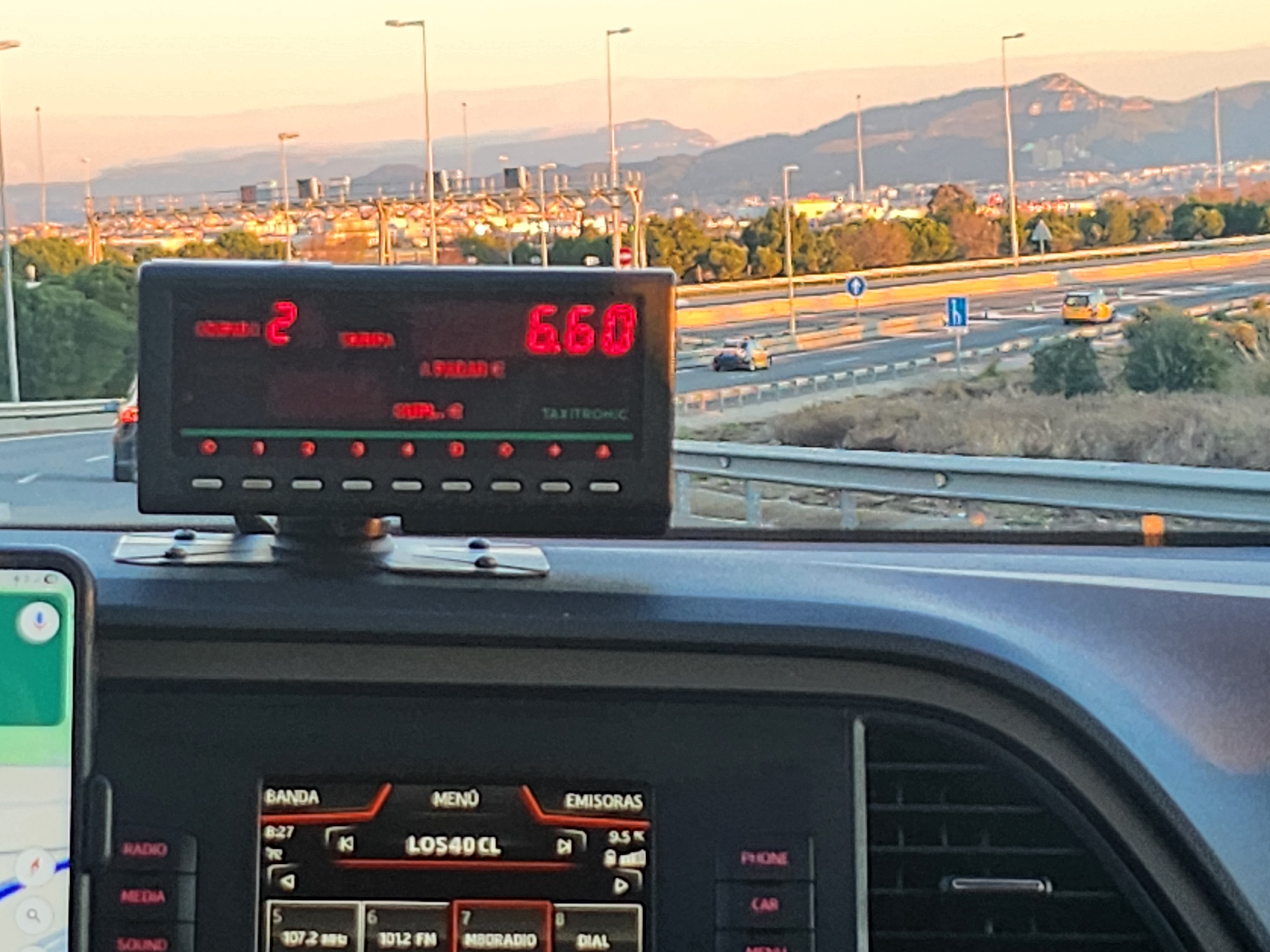 미터기 택시타고 바르셀로나 공항에서 숙소로 가고 있다.