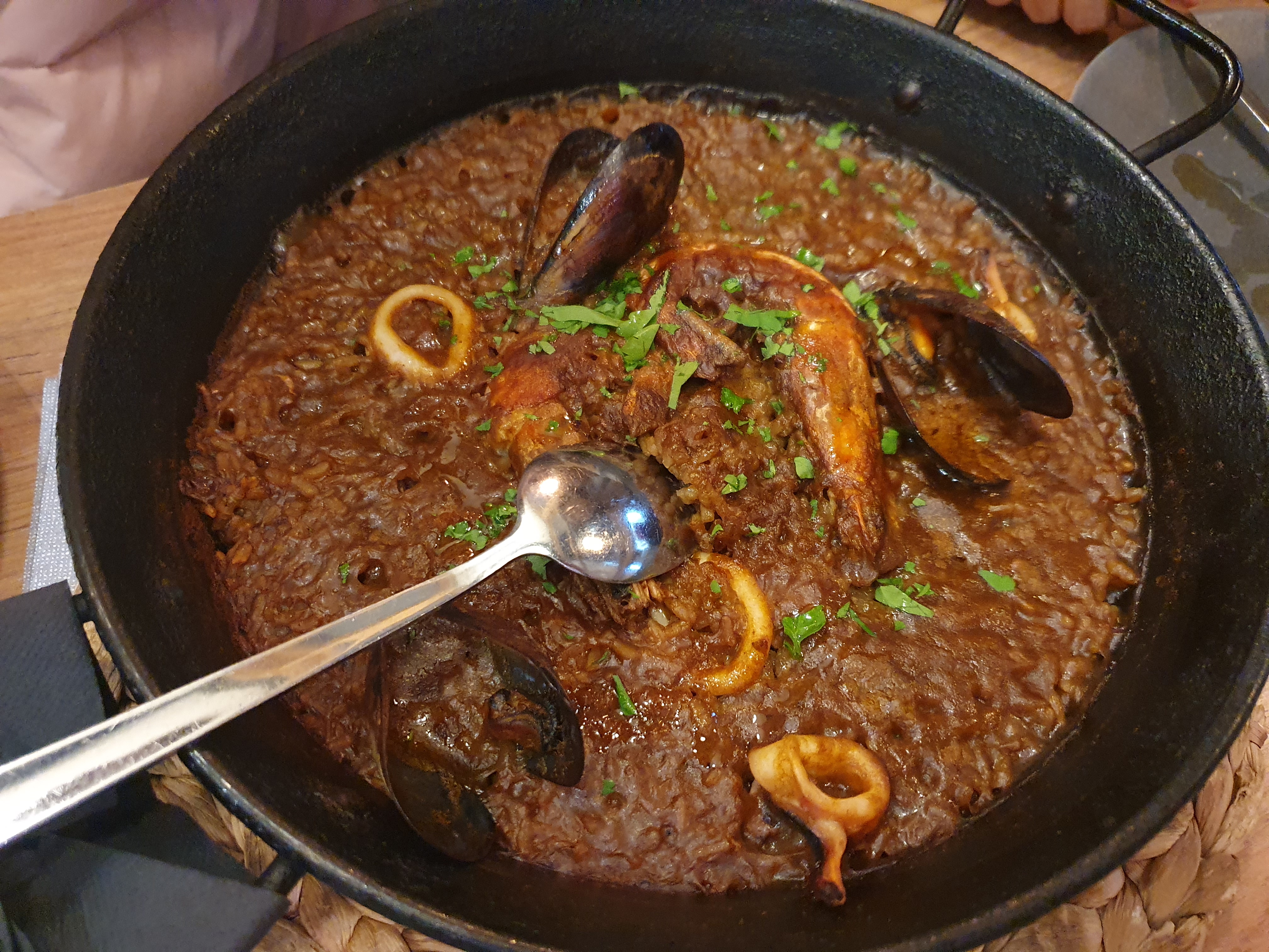 빠에야인데 짜장의 맛과 향이 났다. 아마 오징어 먹물 빠에야 인 듯 하다.