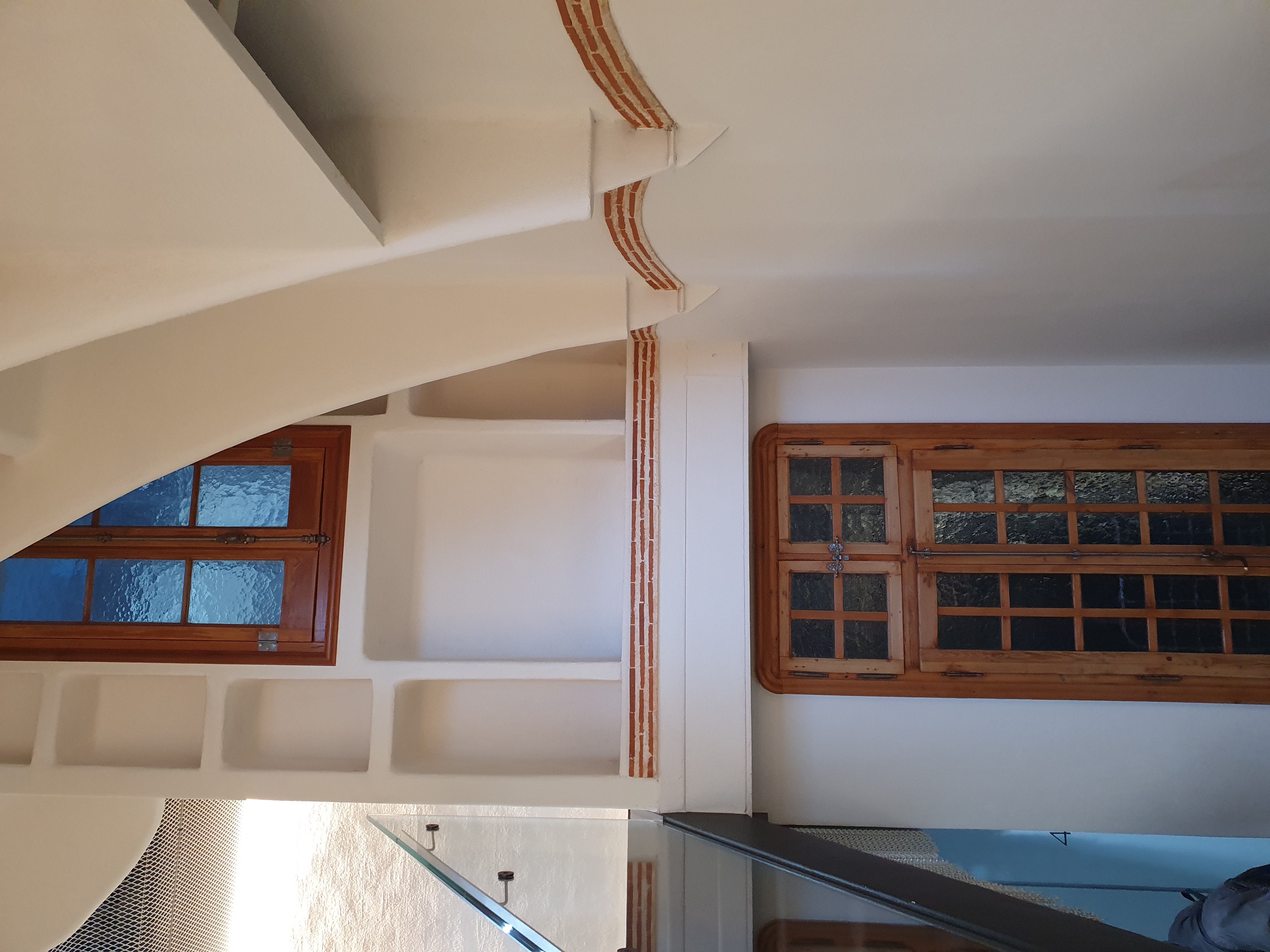 내부 창들을 보면 각과 직선이 거의 없고, 같은 모양의 창 찾기도 어렵다.