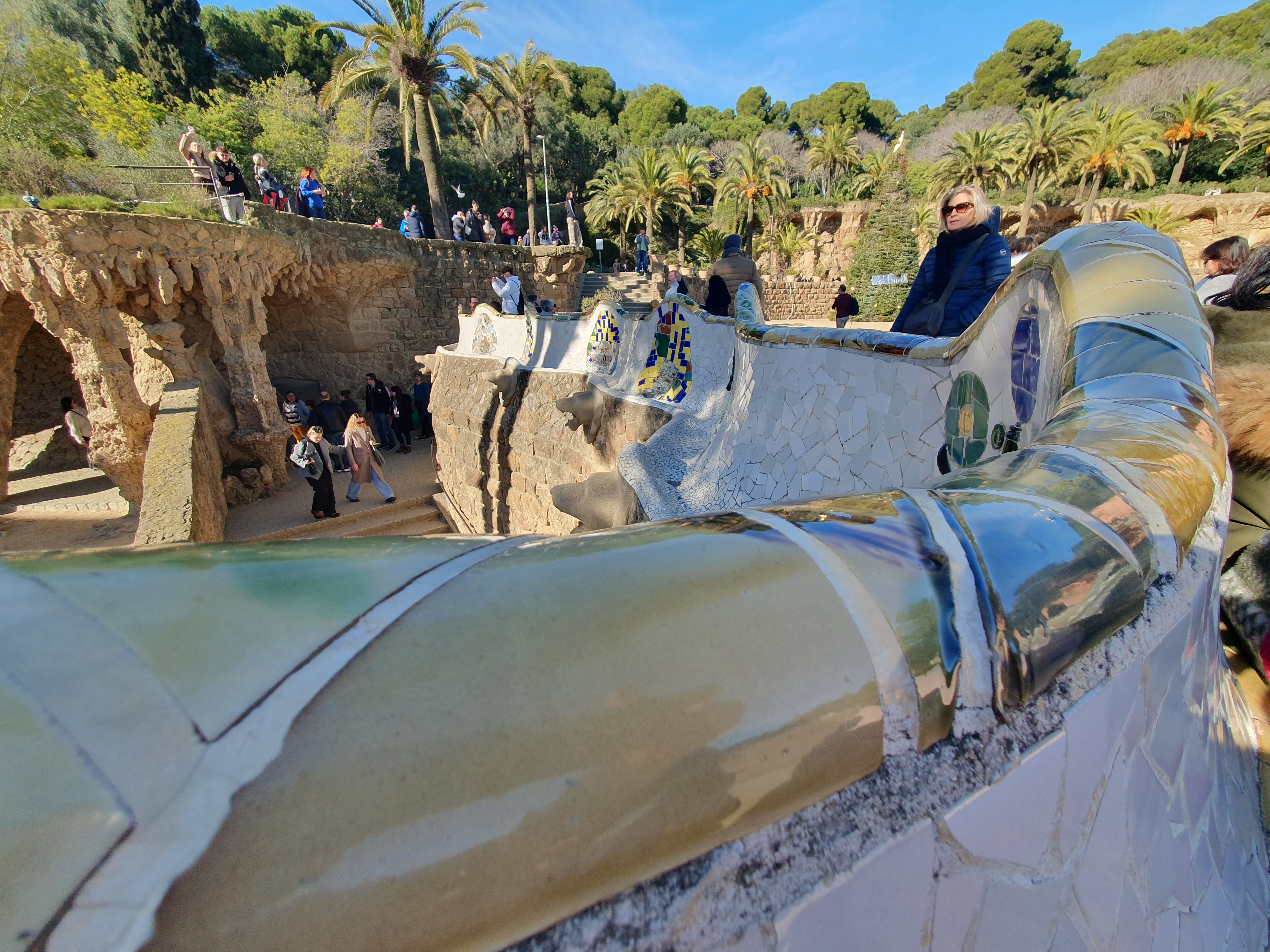 세계에서 가장 긴 벤치라는 구엘 공원 내 벤치인데 돌 벤치일 것 같지만 앉아보면 아주 편하다.