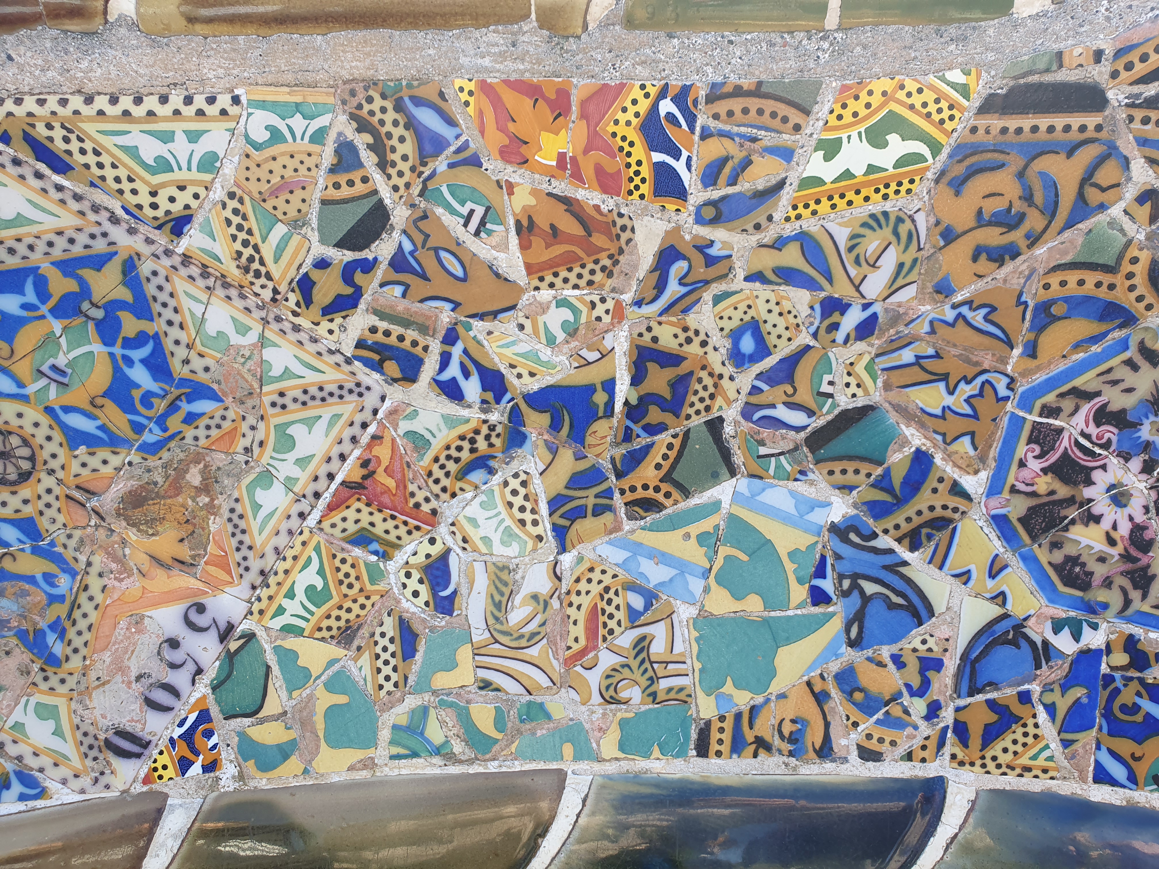 트렌카디스(trencadís)'라는 기법으로 깨진 세라믹 조각을 재활용하여 만들어졌다.