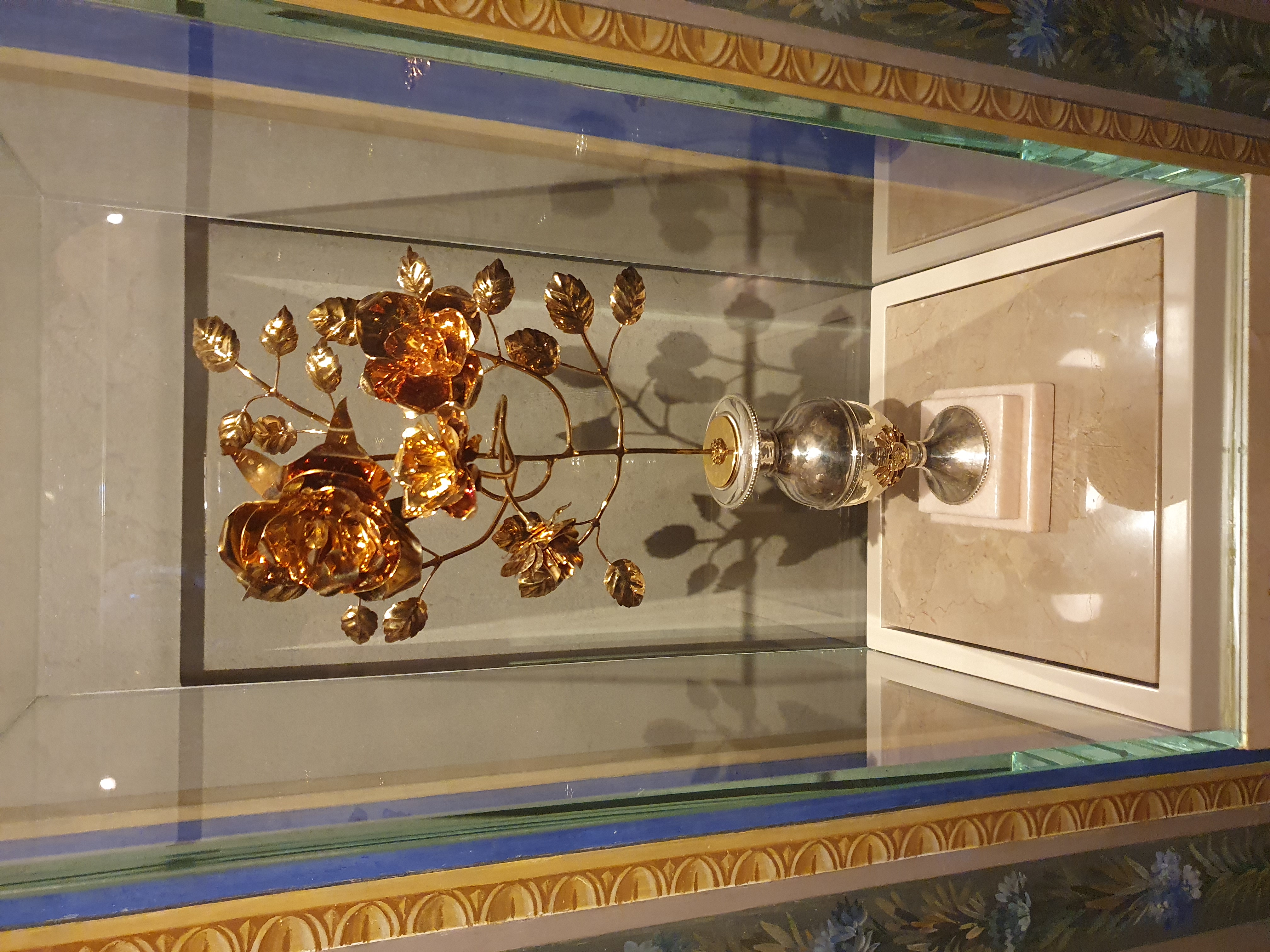 교황 프란치스코가 몬세라트의 검은 성모상(Mare de Déu de Montserrat, La Moreneta)에 헌정한 황금 장미로 2023년 10월 7일 교황 프란치스코가 몬세라트 수도원에 헌정했습니다.