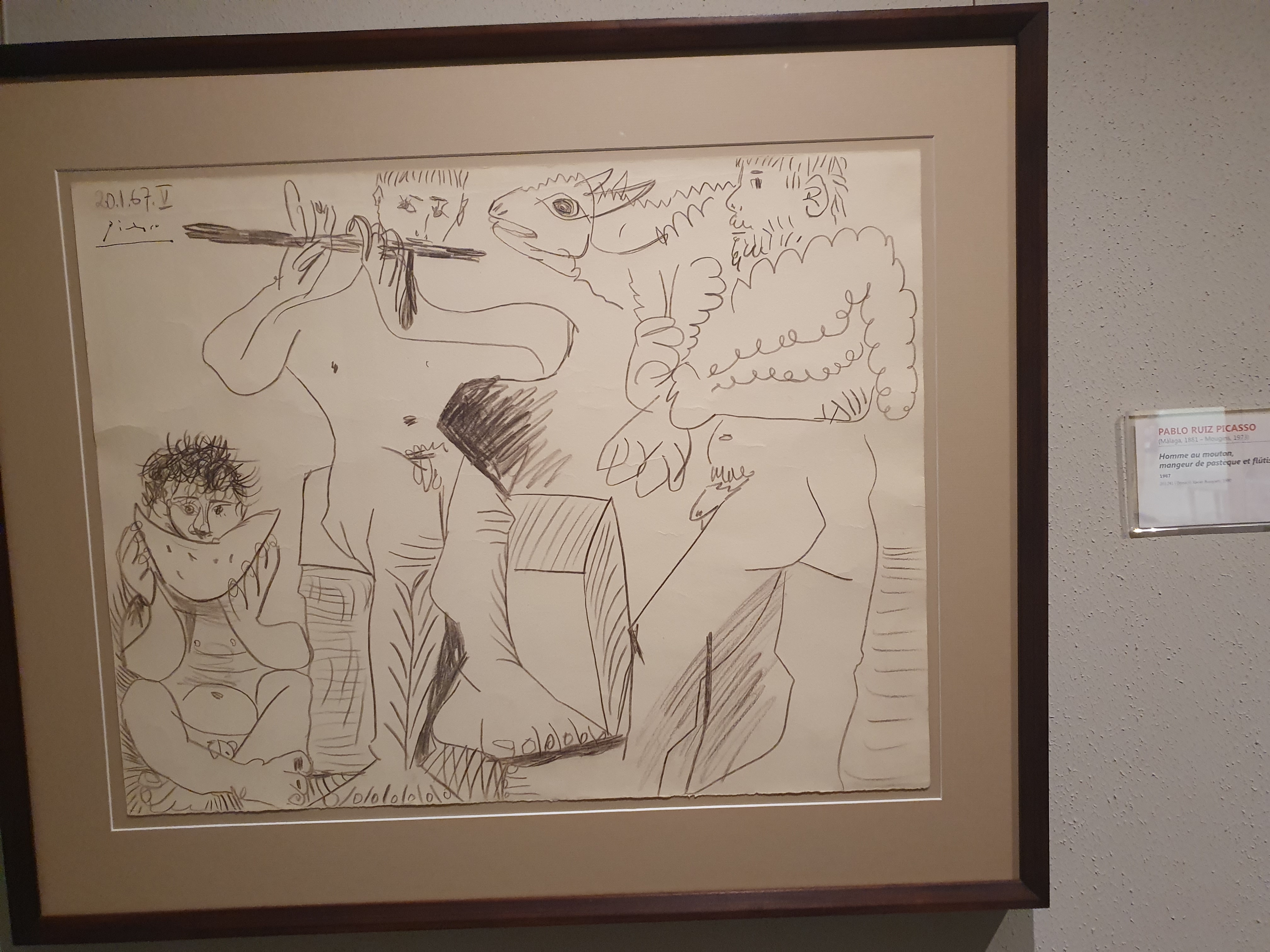 파블로 피카소의 1967년작 '양을 든 남자, 수박 먹는 남자, 피리 부는 남자'(Homme au mouton, mangeur de pastèque et flûtiste)