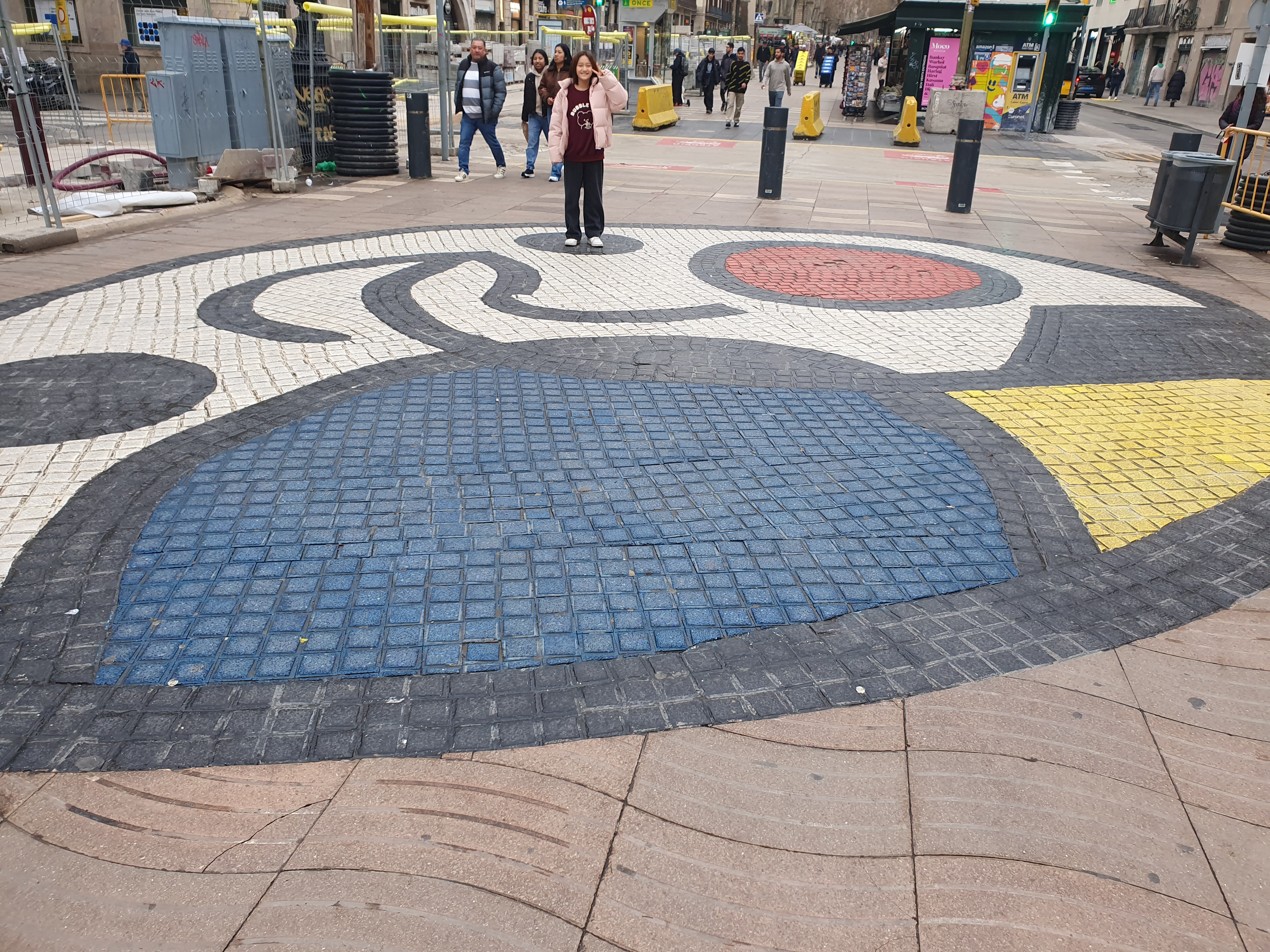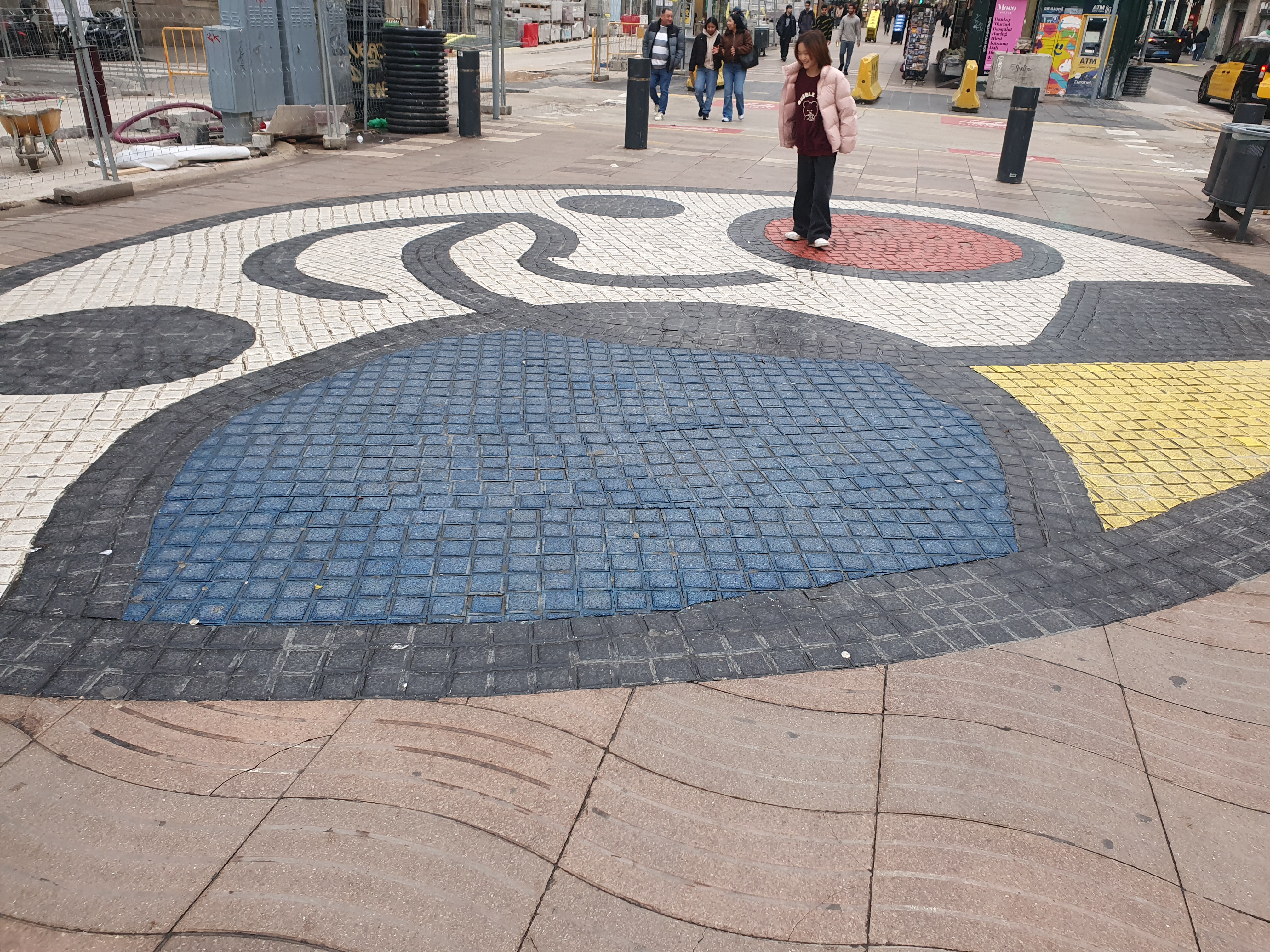 카탈루냐 출신 예술가 호안 미로가 디자인한 이 모자이크는 람블라스 거리 한가운데 보도블록에 설치되어 있어 누구나 밟고 지나갈 수 있다.
