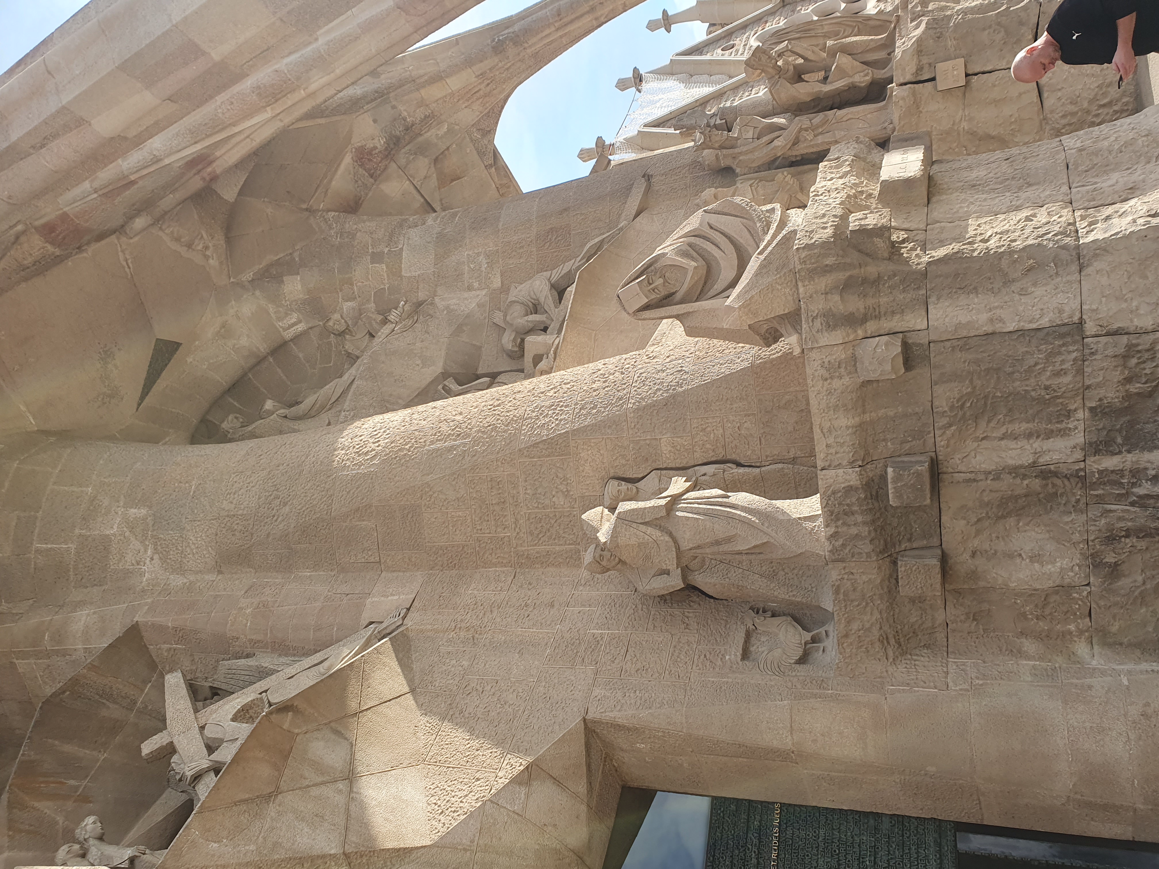 탄생의 파사드가 풍요·생명·자연의 곡선으로 가득하다면, 수난의 파사드는 각진 선, 비어 있는 공간, 그림자가 핵심입니다.