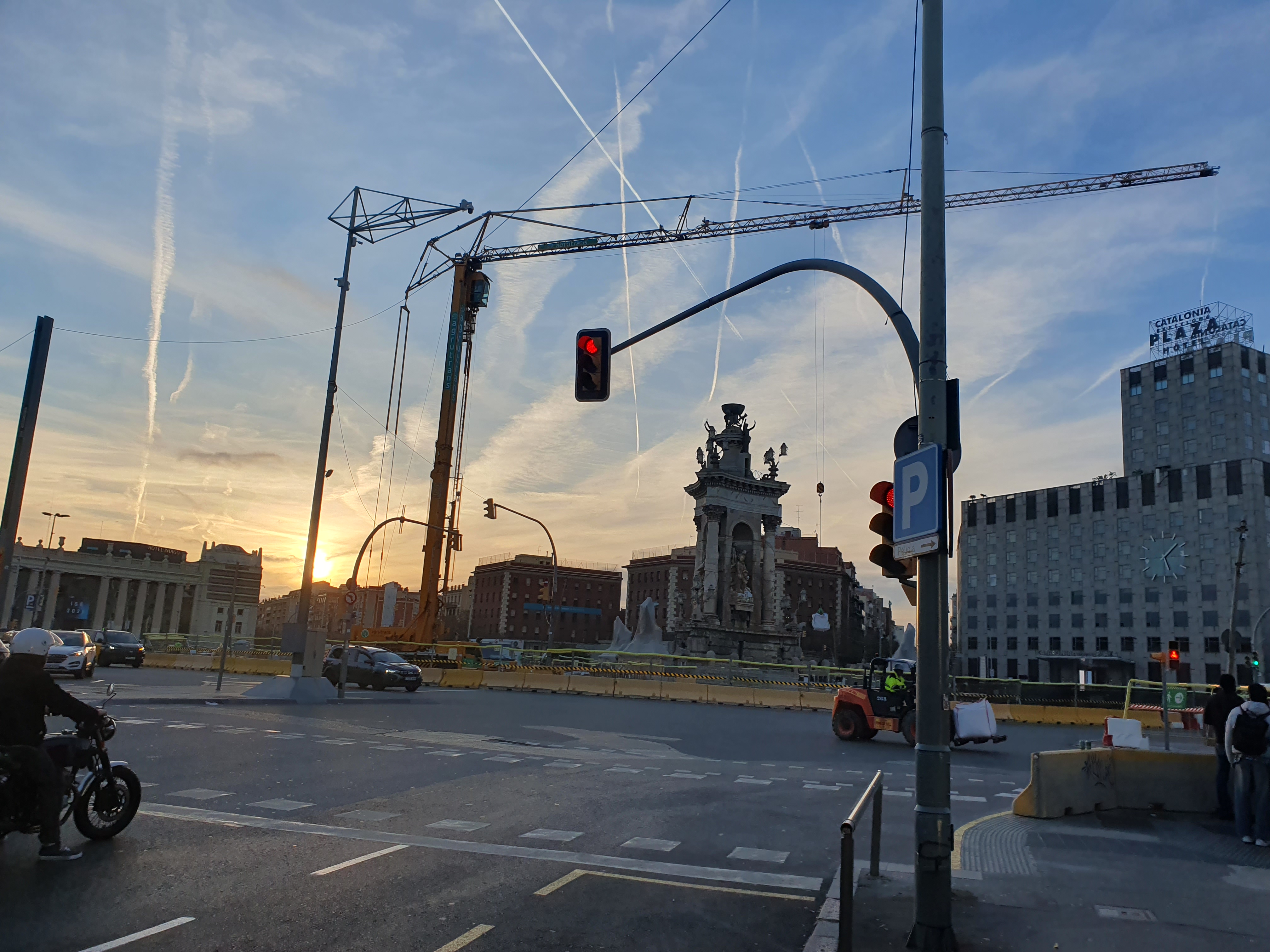 에스파냐 광장(Plaça d'Espanya)의 중앙 분수대인 '폰트 데 몬주익(Font de Montjuïc)'이 보이며, 이 주변에서 세계 3대 분수쇼 중 하나인 '매직 분수'쇼가 열린다는데 공사중이었다.