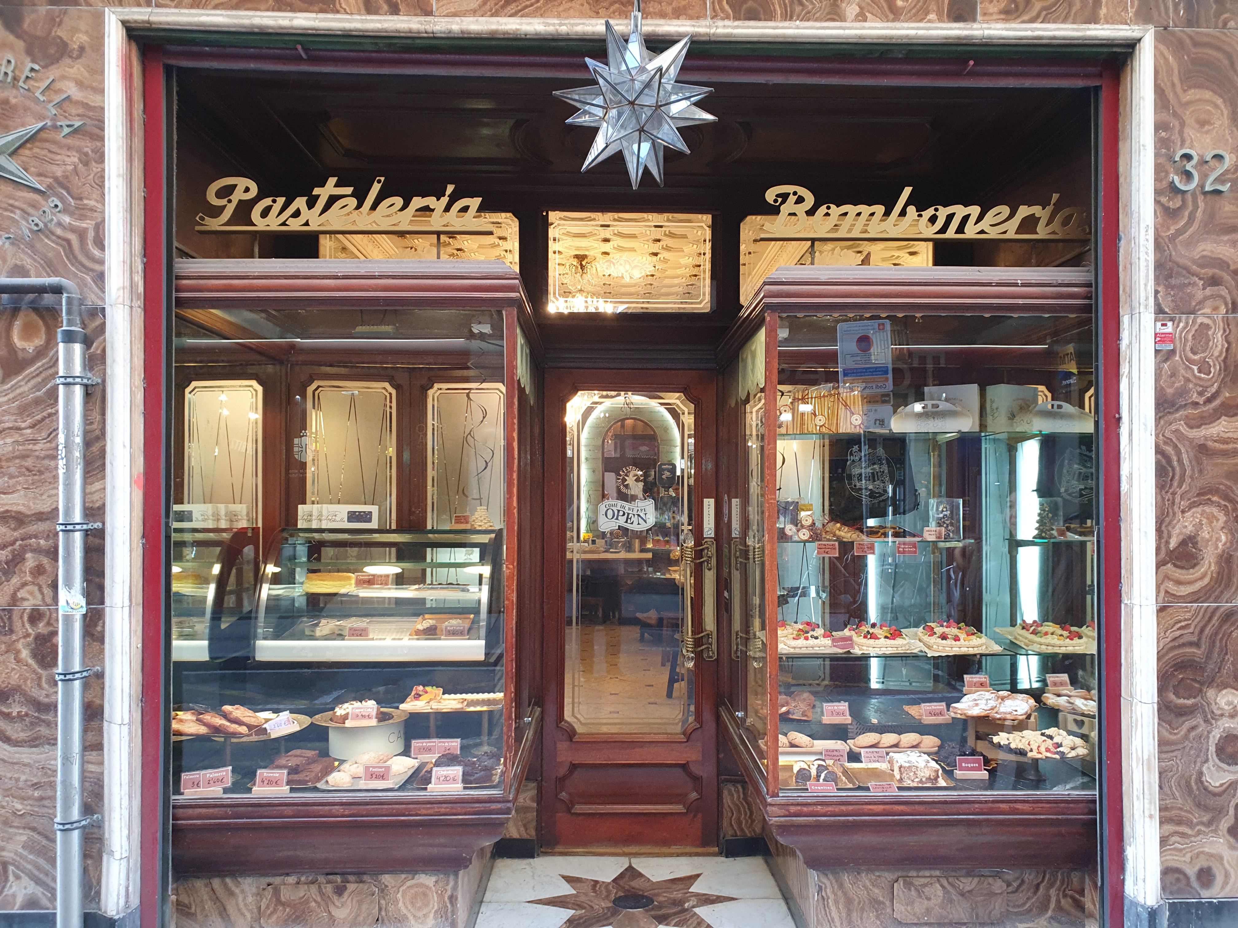 1825년에 설립되어 바르셀로나에서 가장 오래된 제과점이라고 한다.