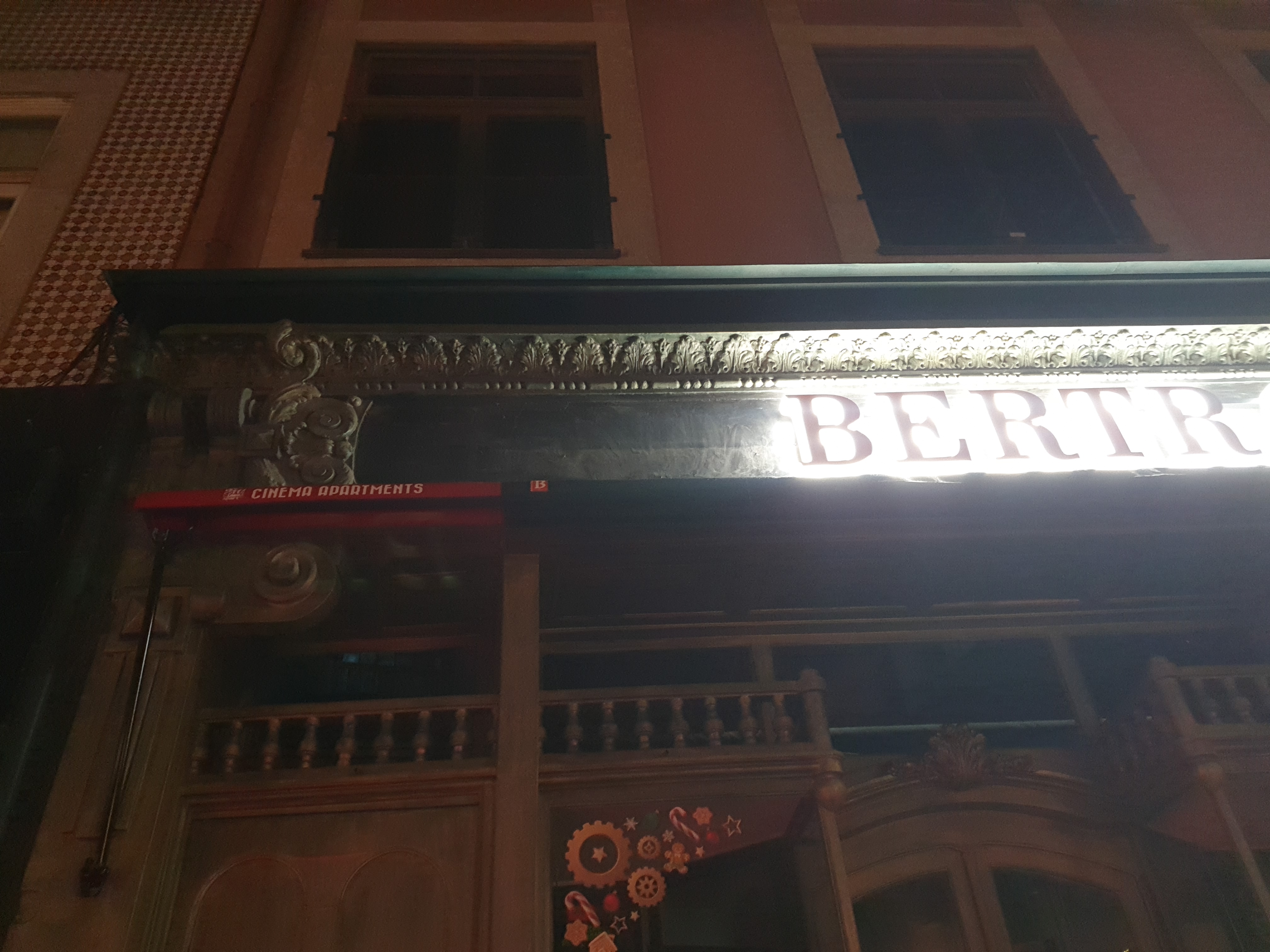 가게 간판의 왼쪽 아래 아주 조그만하게 시네마 아파트먼트(Porto Cinema Apartments)라고 쓰여 있다.