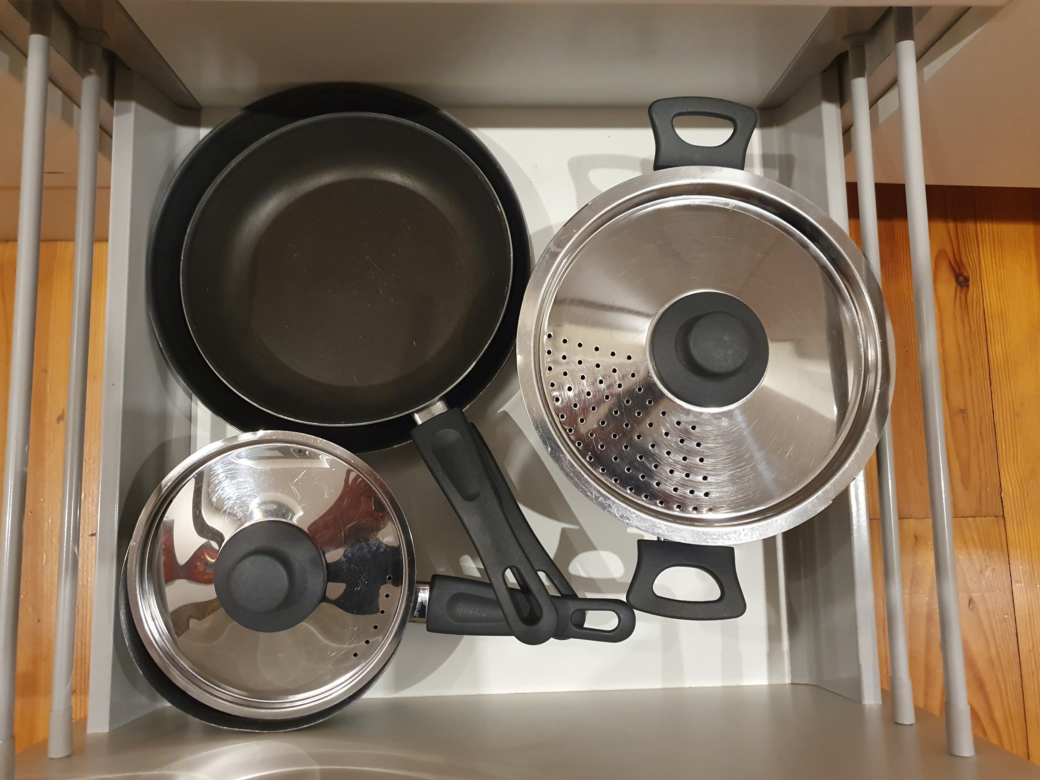 냄비와 후라이팬 등 모든 것이 갖추어져 있다.