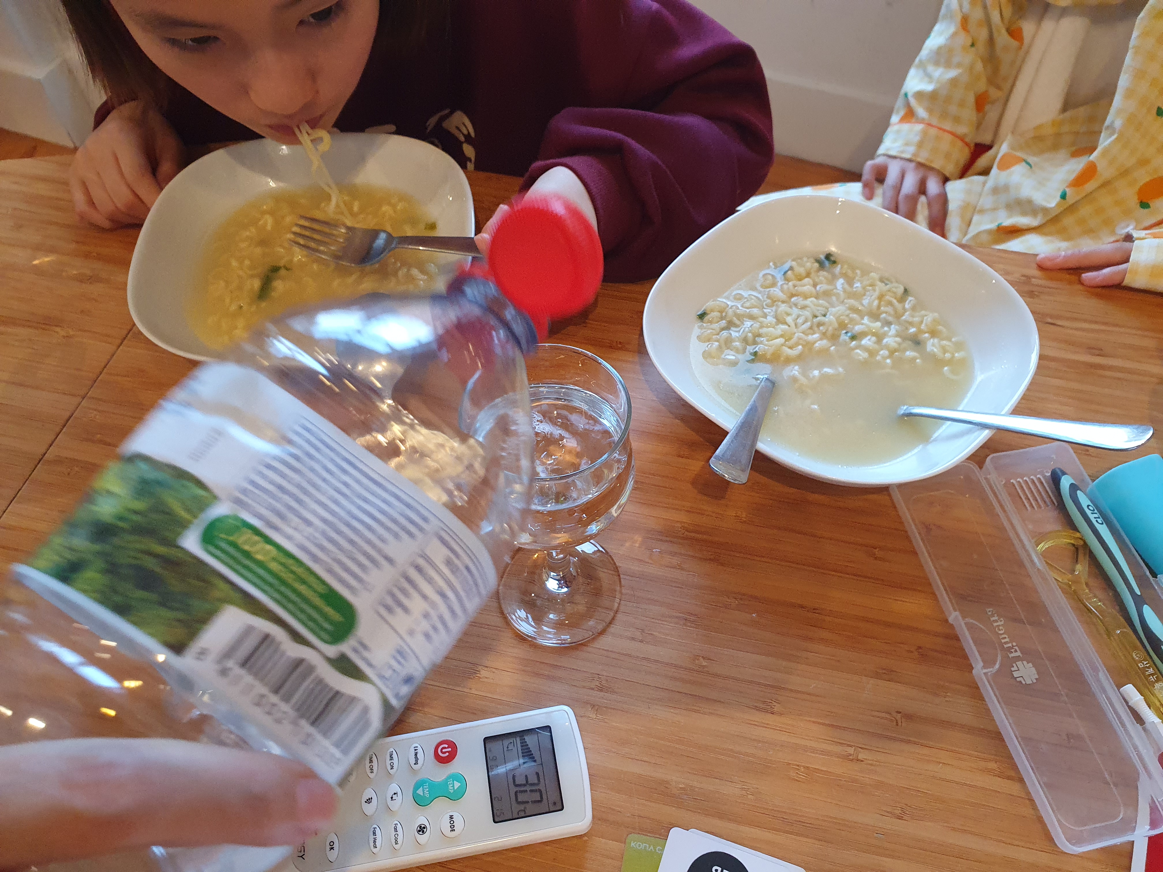 아이들은 한국에서 가져온 사골라면 먹으며 아주 행복