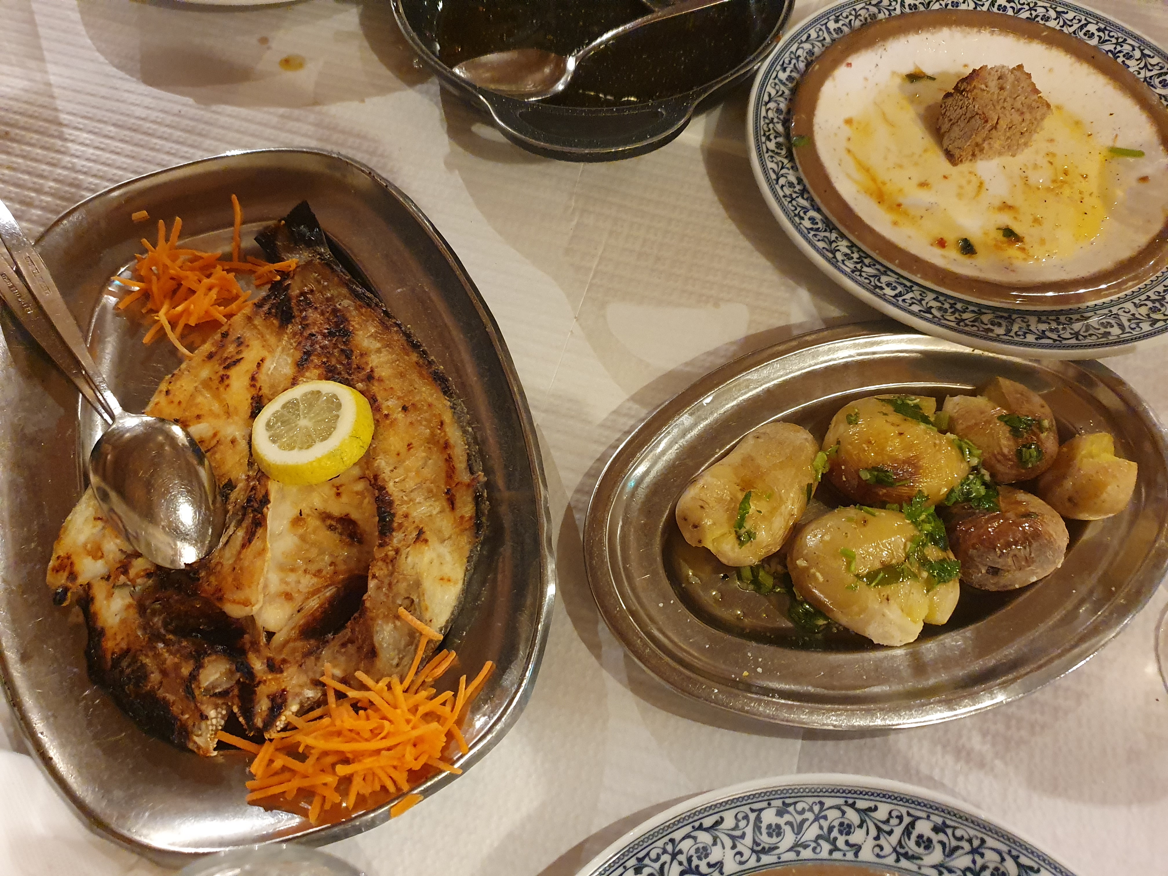 생선구이(돔 종류) 주문하니 같이 나온 감자구이 10.75유로