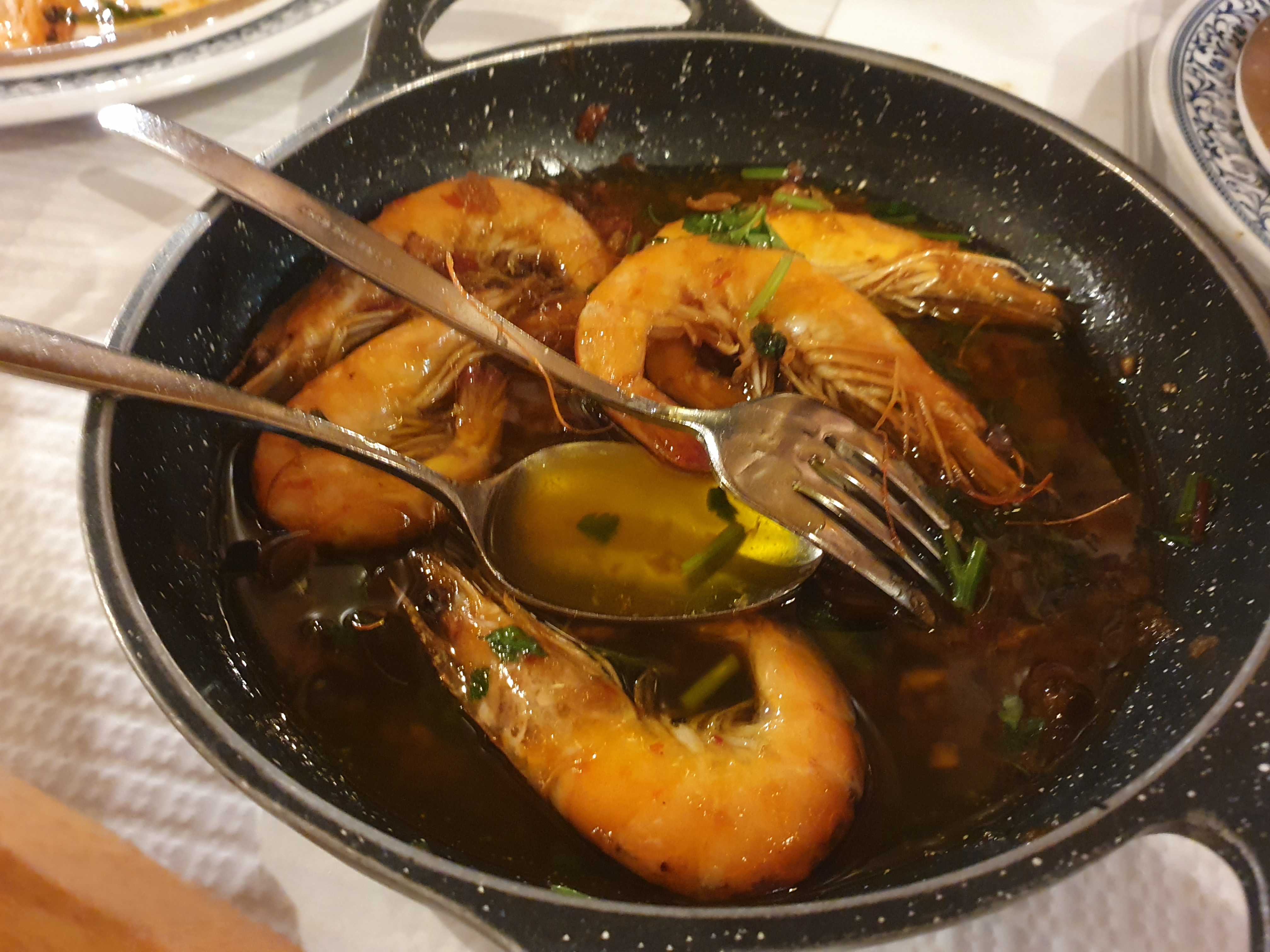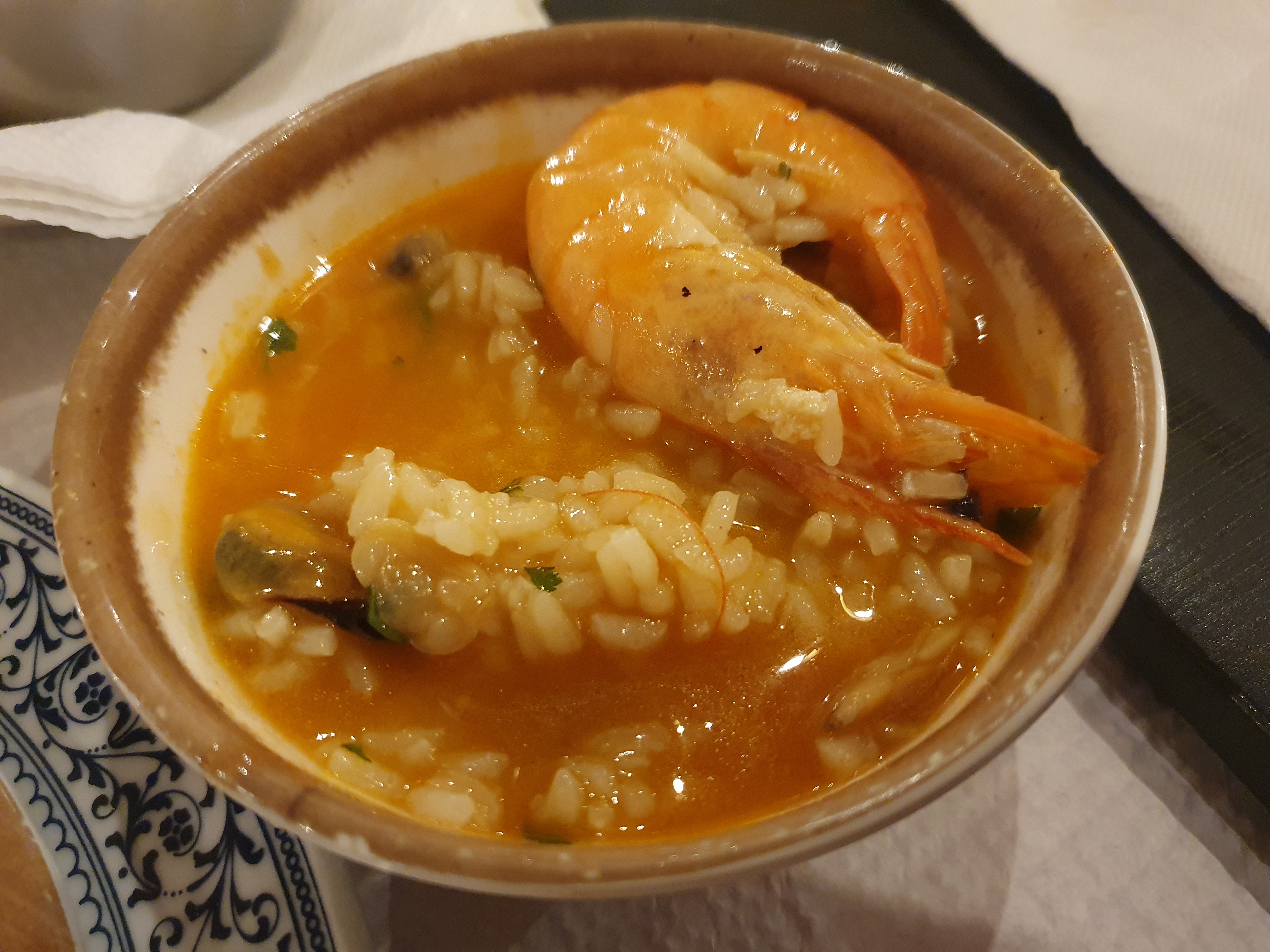 올리브 오일에 익힌 새우 요리인데 독특한 향이 있었다. 9.5유로
