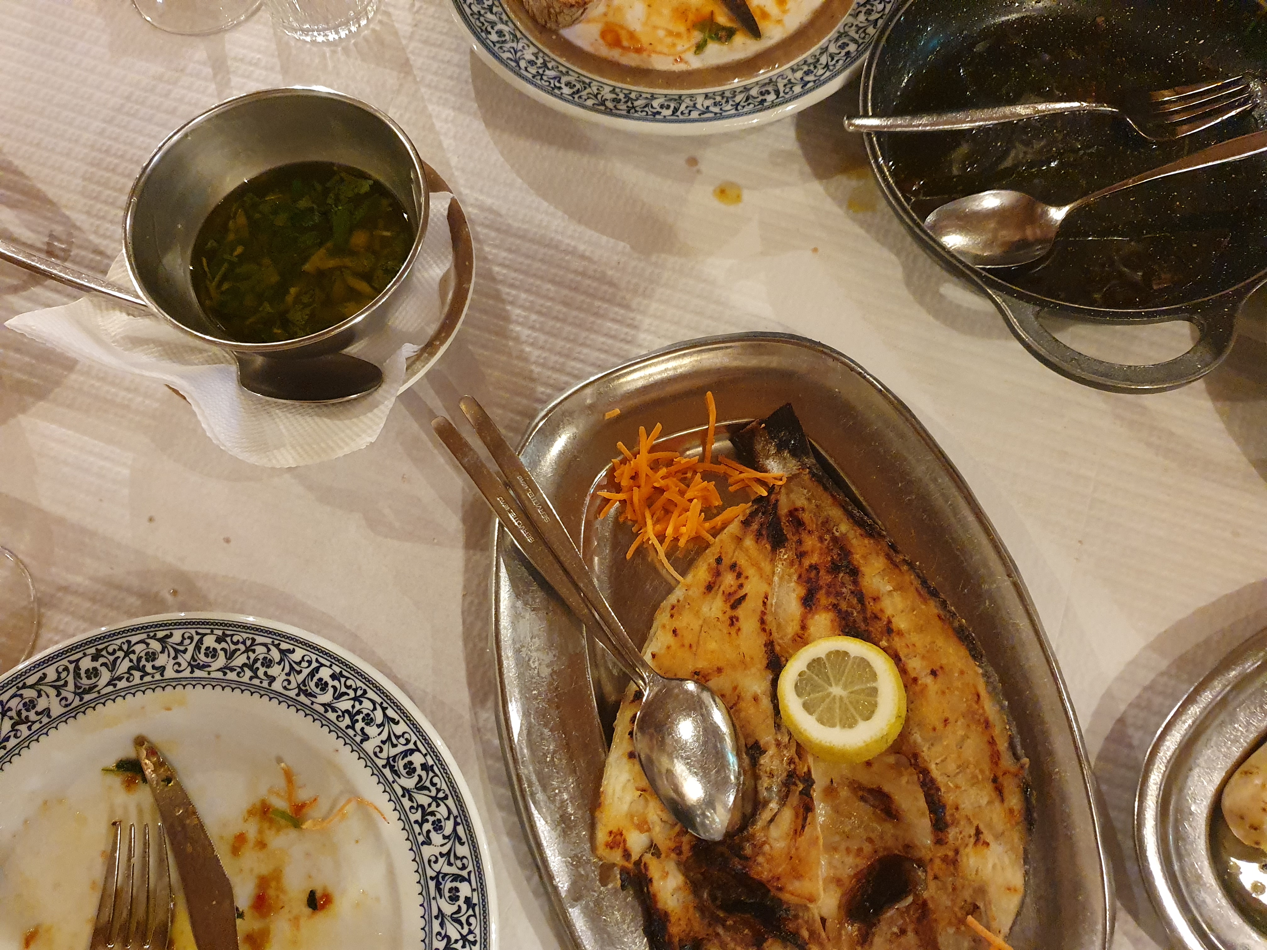 생선구이에 나온 소스도 올리브오일에 파와 뭔가를 섞어 만들었다.