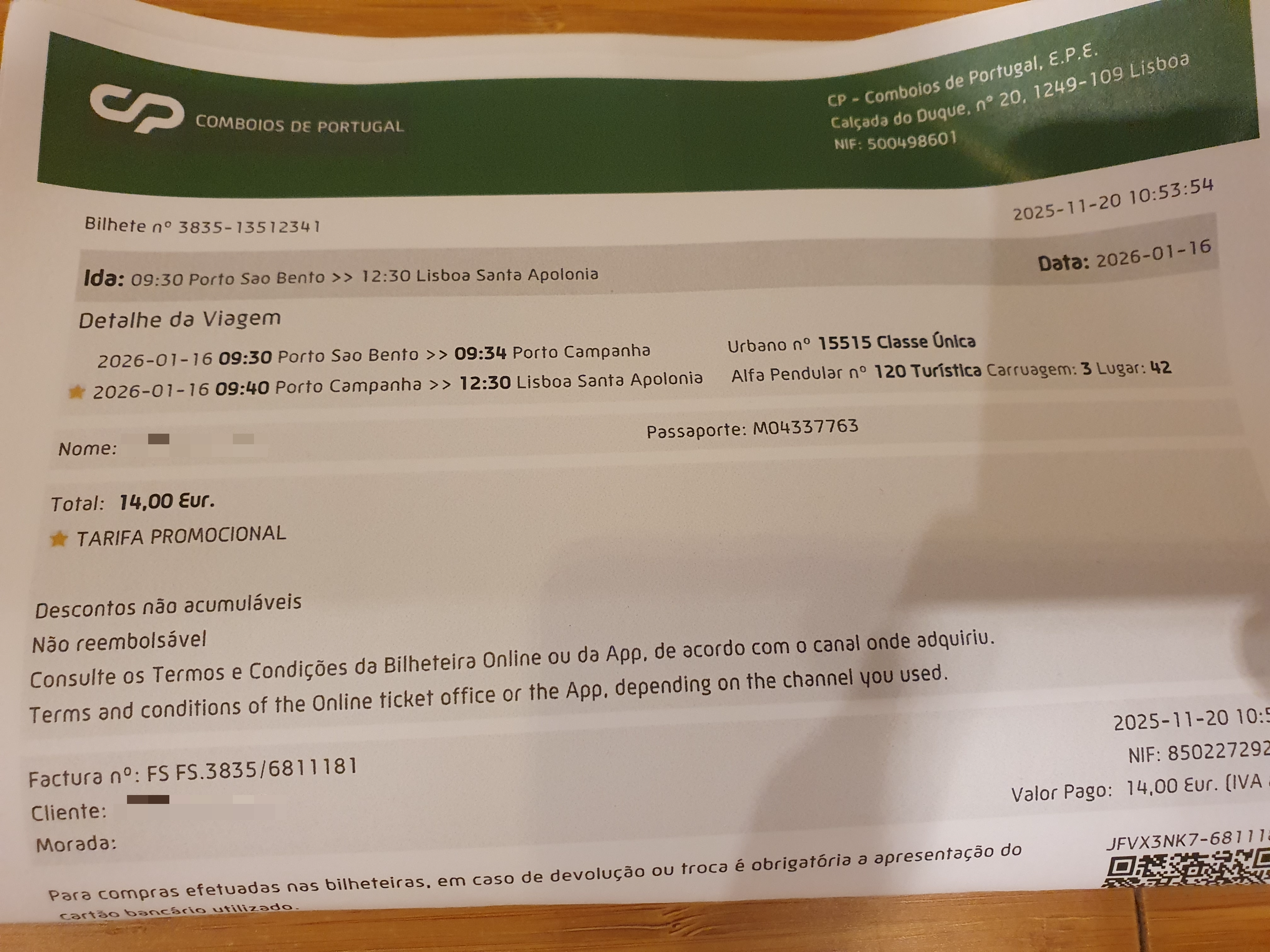 포르투에서 묵고 있는 숙소가 상 벤투역 근처라서 상 벤투역에서 리스본까지 가는 기차를 예약해 두었는데