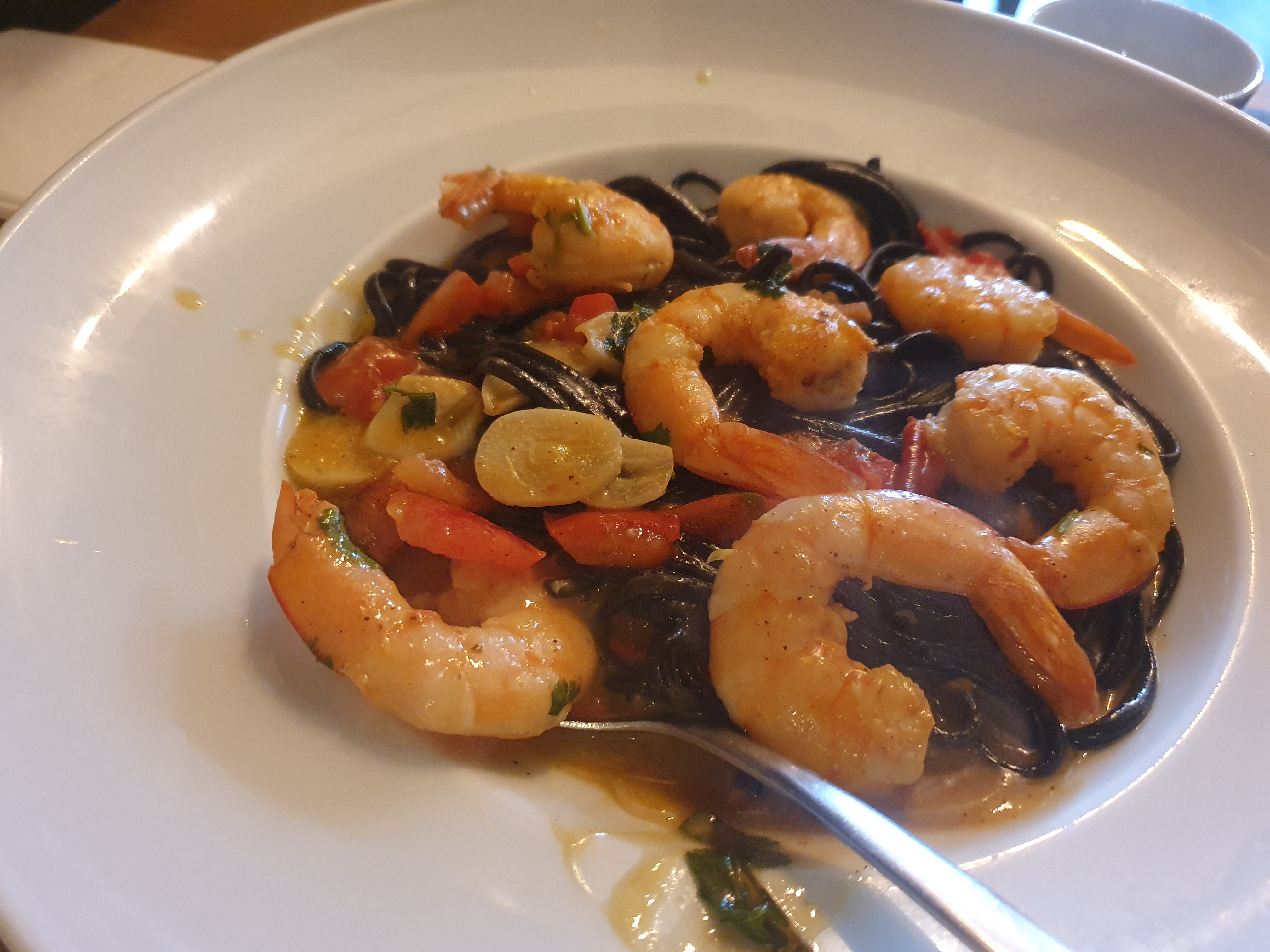 새우가 많이 올라간 먹물 스파게티 18유로