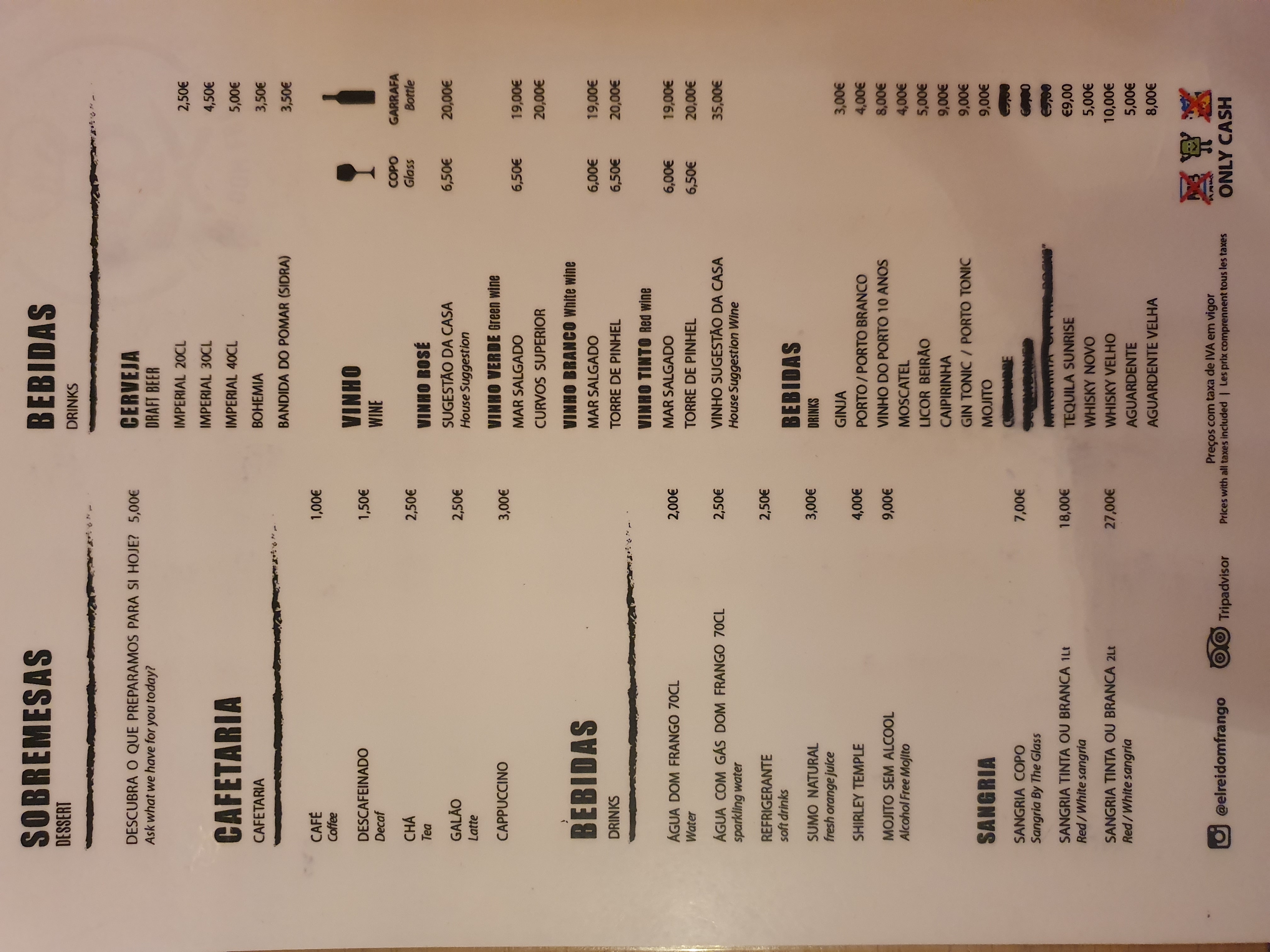 El Rei D. Frango 식당 메뉴판