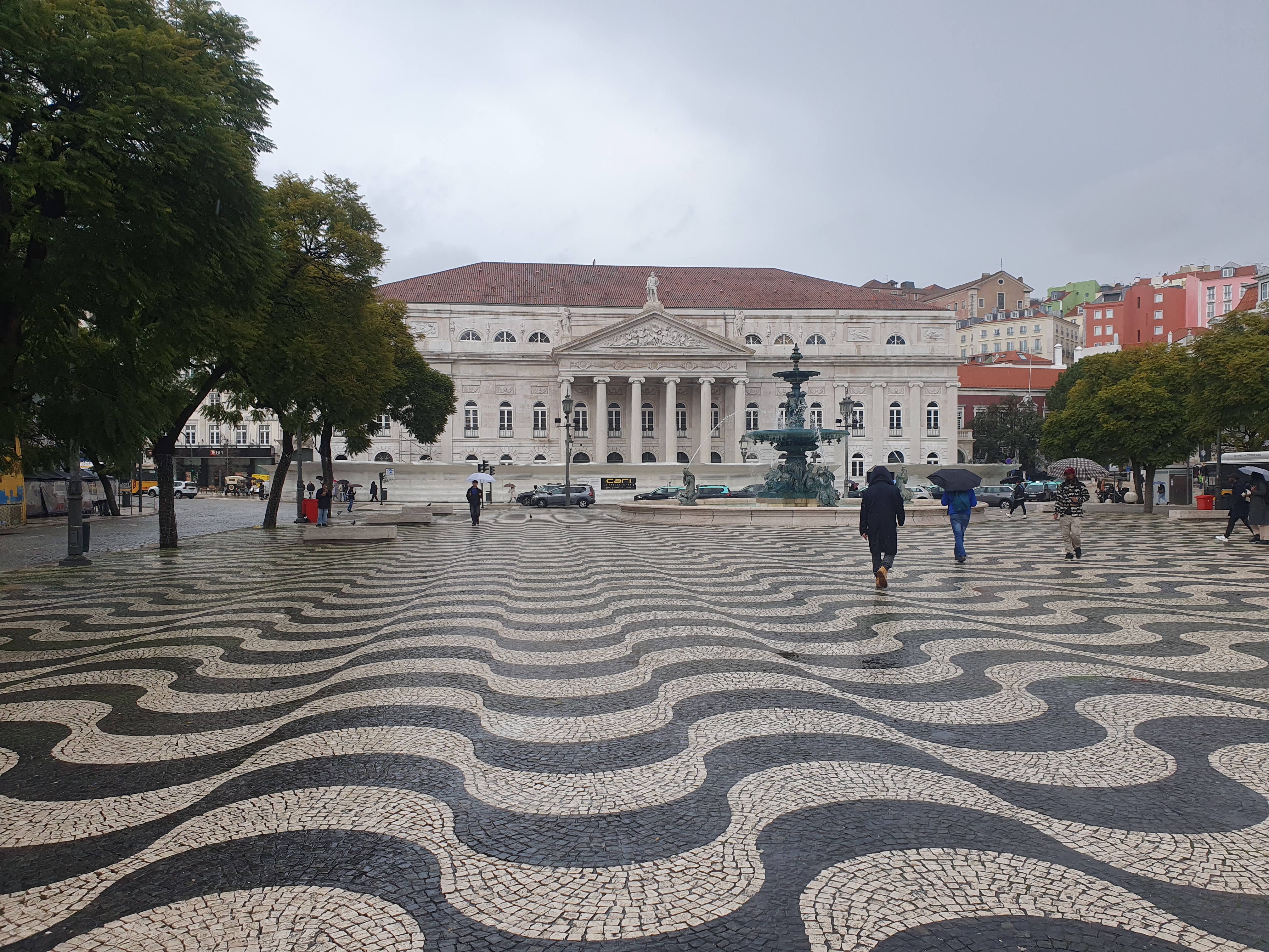 호시우 광장(Rossio Square) 광장의 흑백 물결무늬 모자이크 바닥은 '칼사다 포르투게사(Calçada Portuguesa)'라는 포르투갈 전통 양식으로, 도시의 항해 유산을 상징한다.