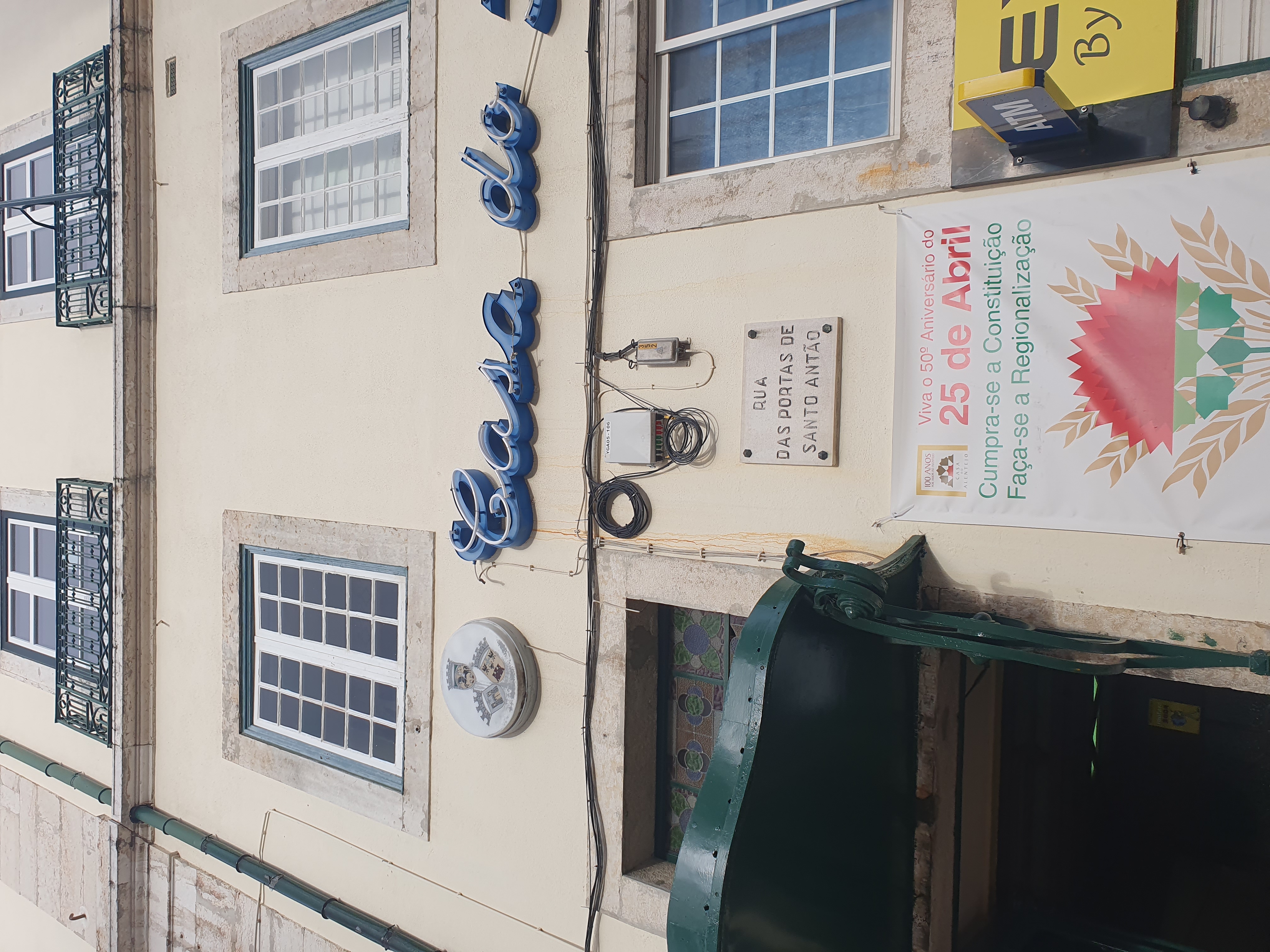 현수막에는 포르투갈의 '4월 25일 혁명'(25 de Abril)을 기념하는 문구와 민주주의를 상징하는 내용이 적혀 있다.
