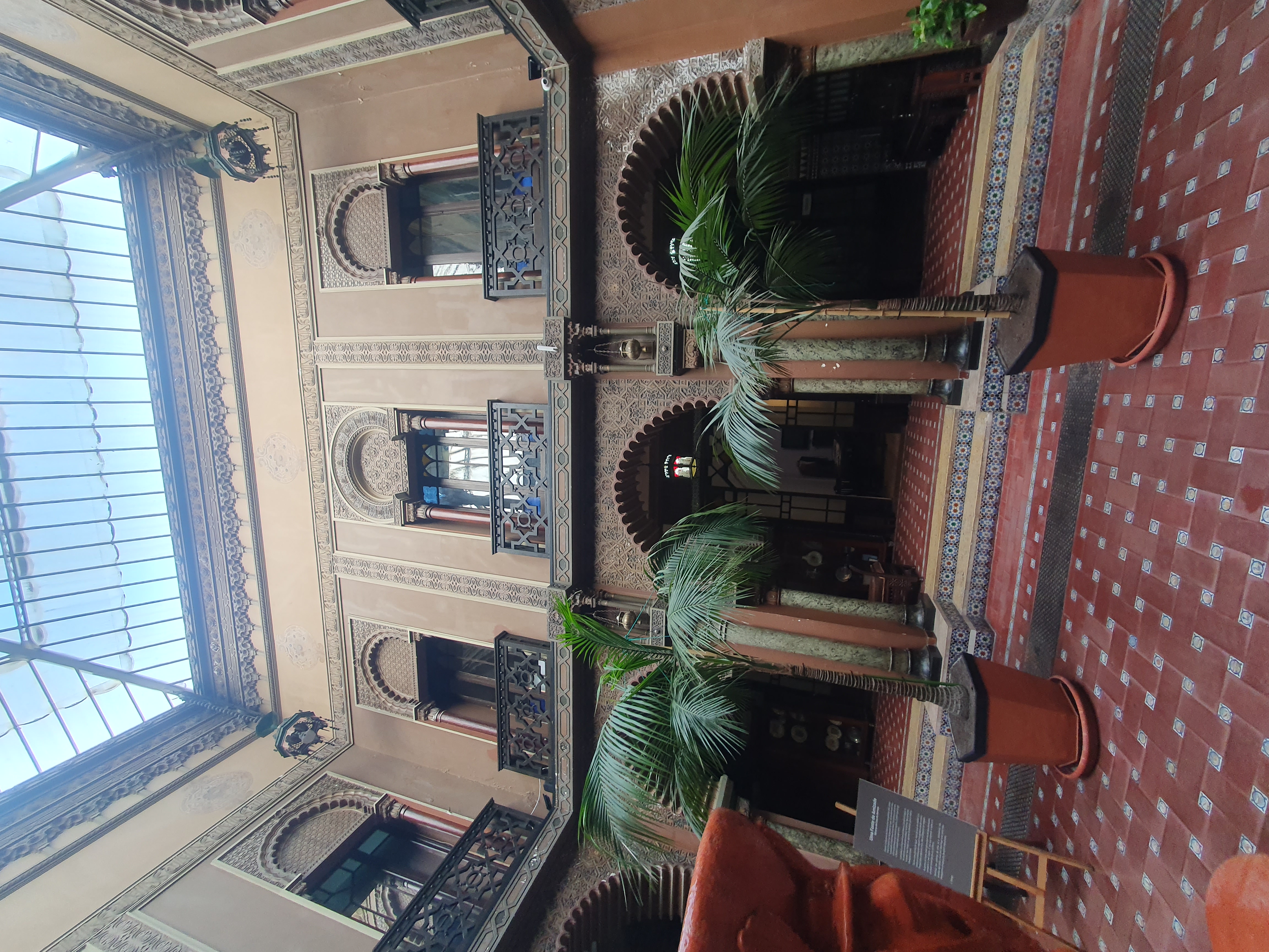 아치형 회랑과 타일 장식이 특징인 무데하르 양식(Mudejar style)의 안뜰이 이국적인 분위기를 자아낸다.