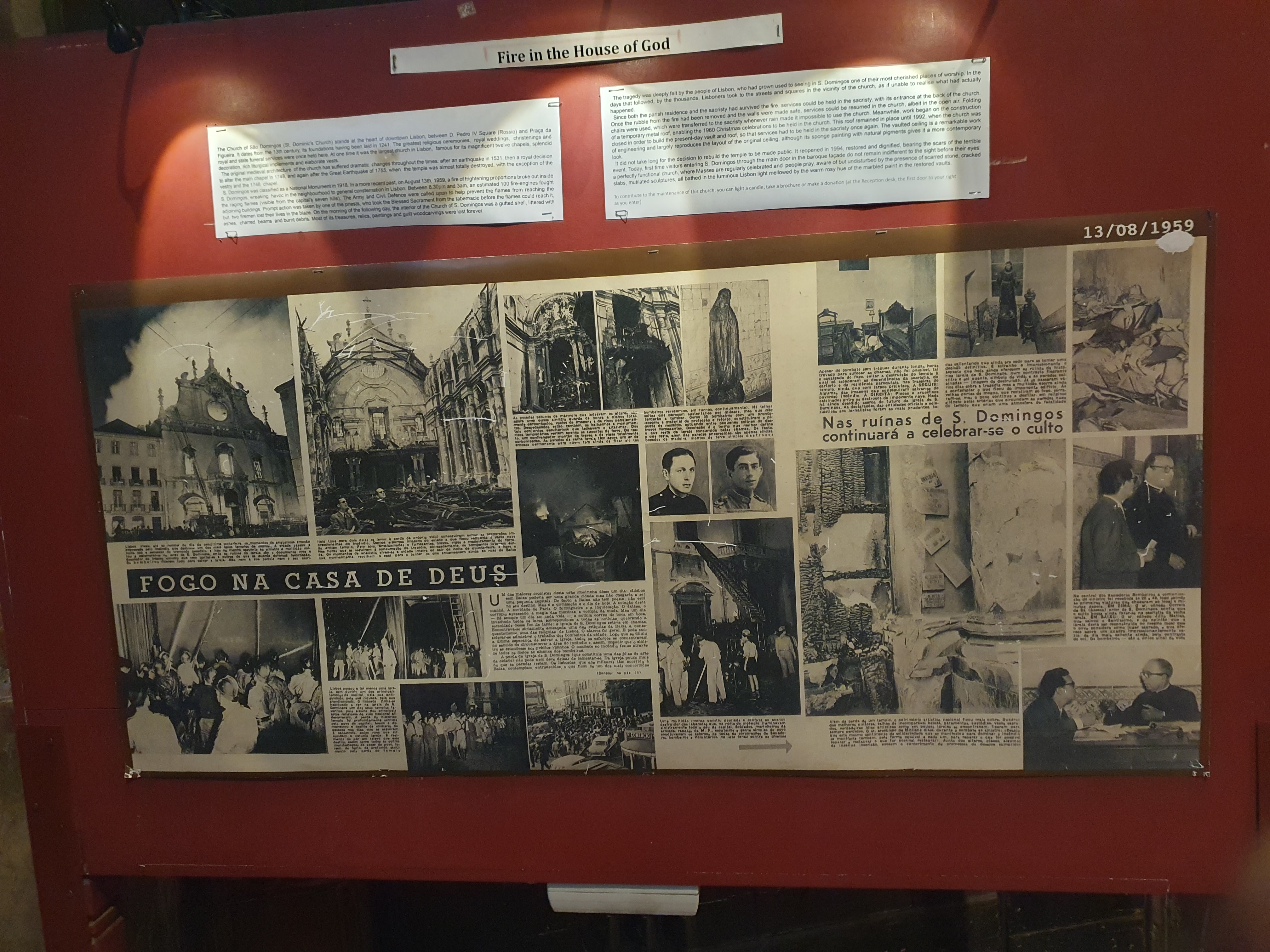 1959년 8월 13일 리스본의 상 도밍고 성당(Igreja de São Domingos)에서 발생한 대화재 순간을 기록한 내용