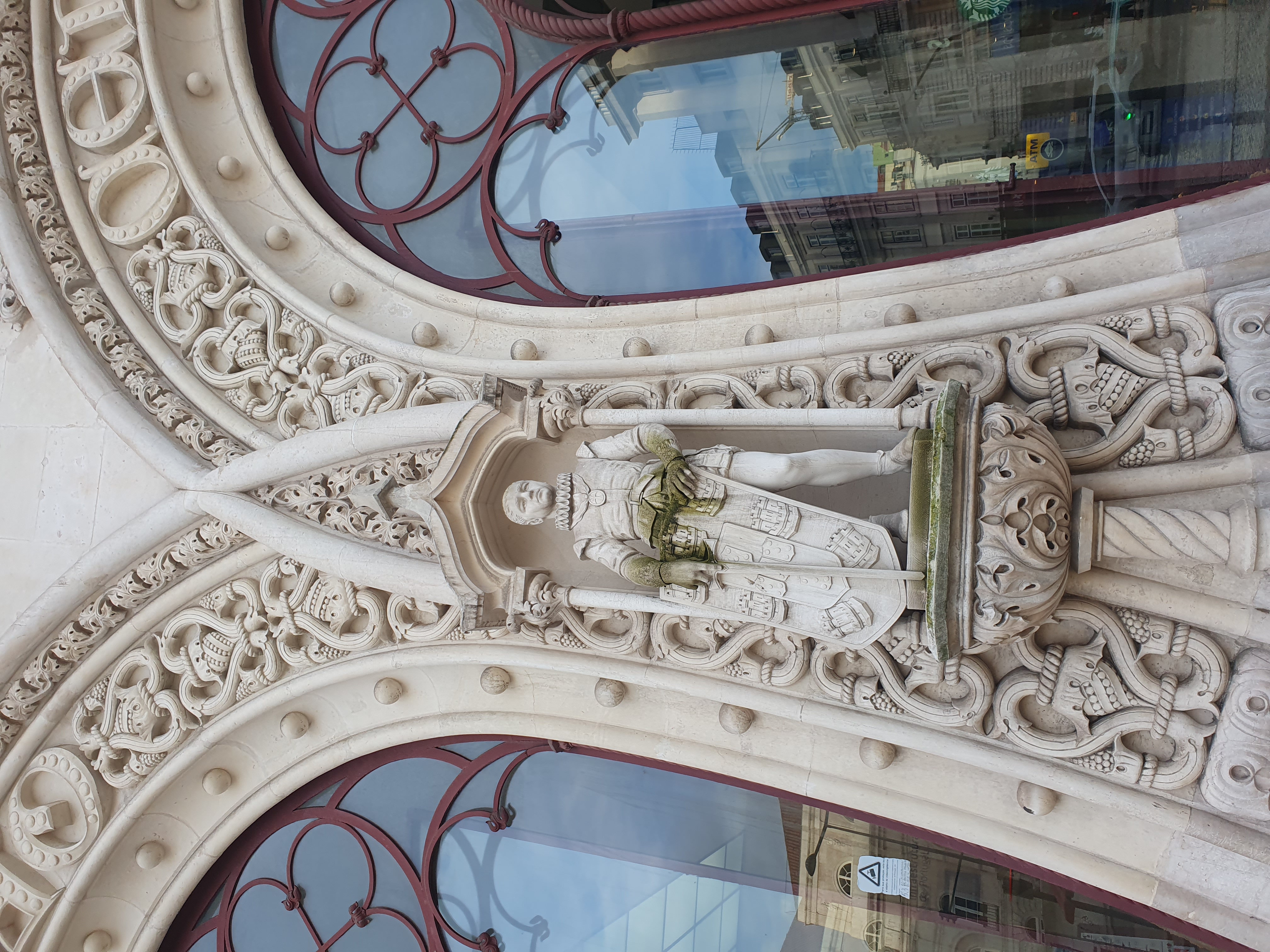포르투갈 리스본의 호시우 기차역 외벽에 있는 동 세바스티앙(Dom Sebastião) 왕의 동상