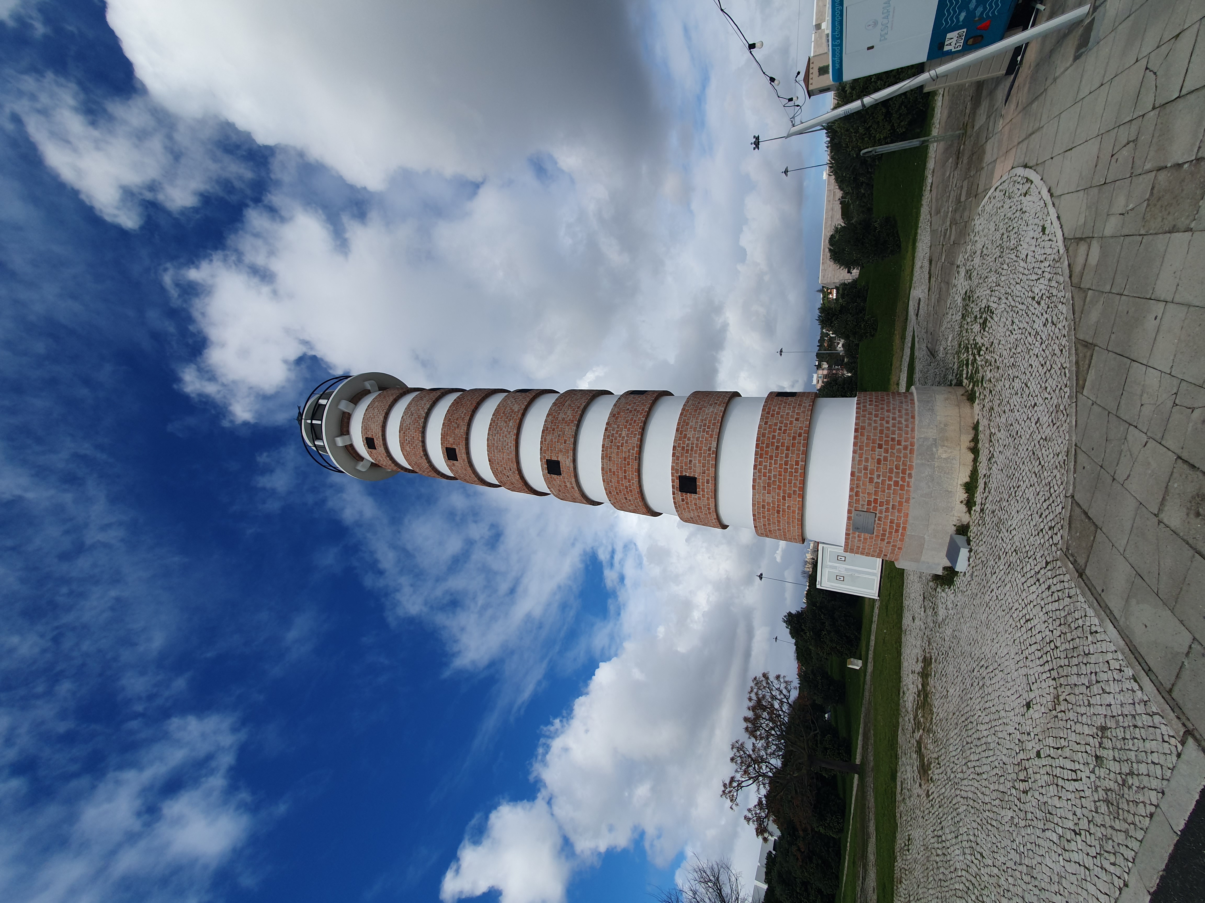 독특한 붉은 벽돌과 흰색 띠로 이루어진 원통형 외관이 특징으로, 원래는 방어를 위한 요새였던 벨렘 탑이 나중에 등대 역할을 했던 것과는 달리, 이 구조물은 애초에 가짜 등대로 만들어졌다.