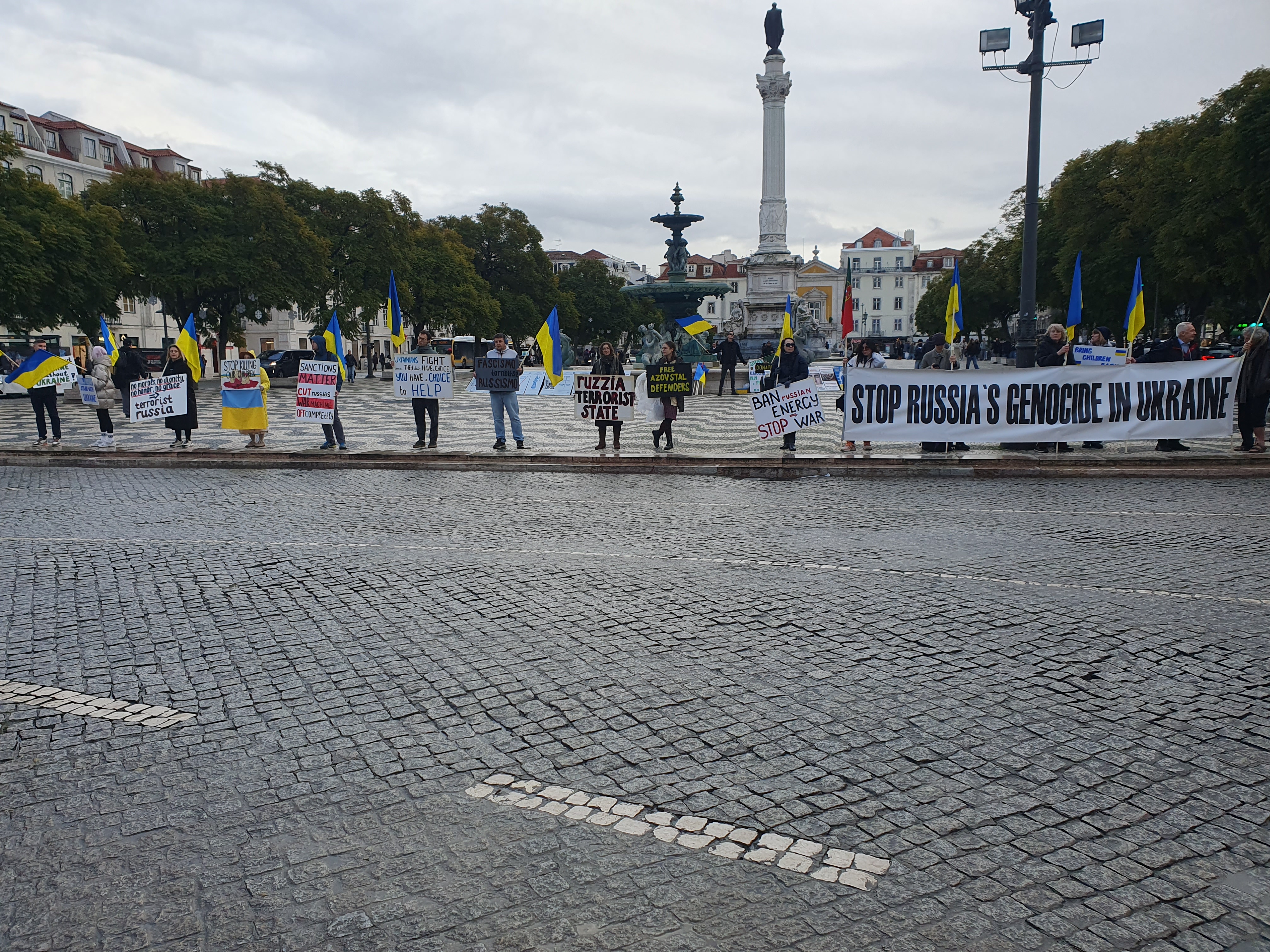 호시우 광장에서 러시아의 우크라이나 침공에 반대하는 시위를 하고 있었다.